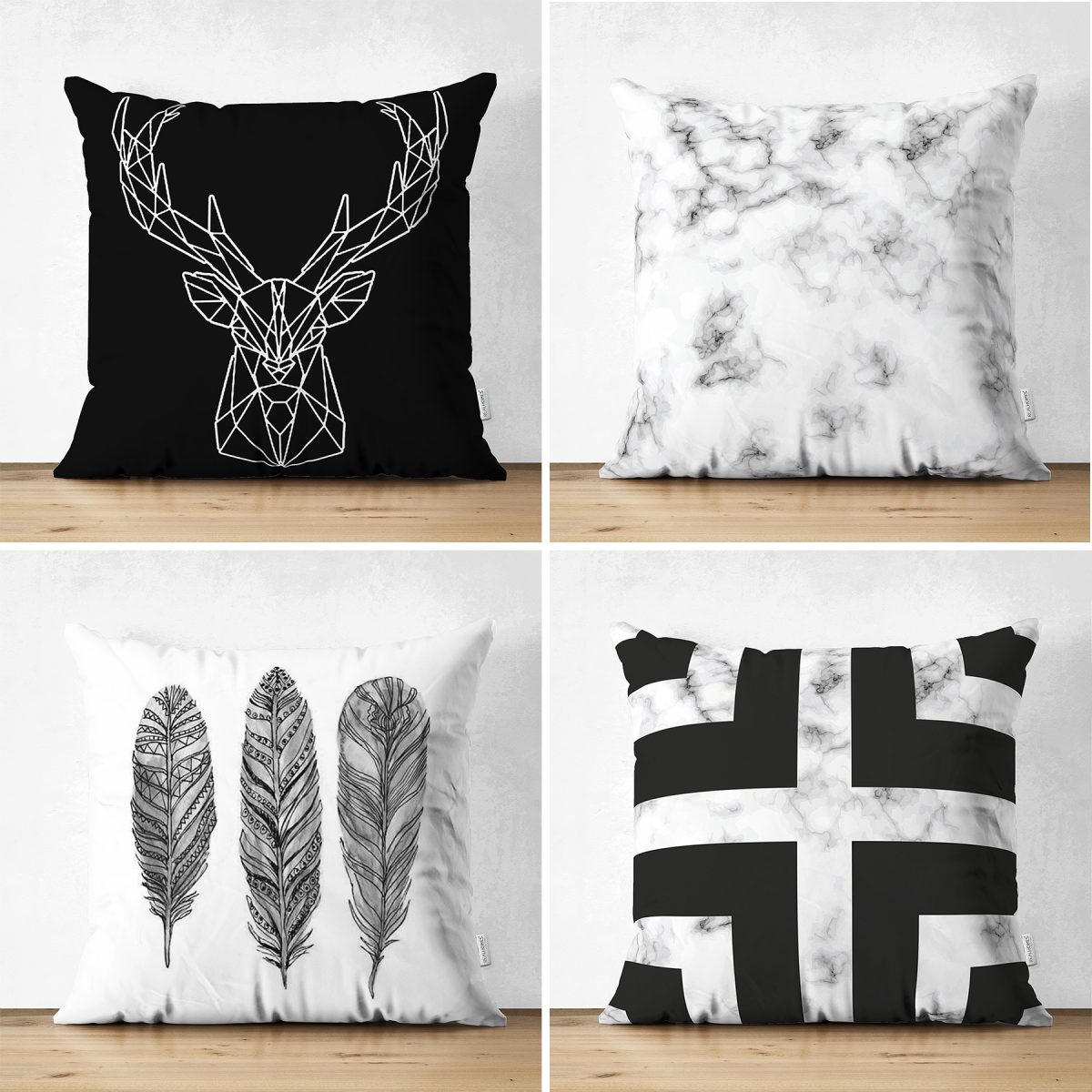 Realhomes Çift Taraflı Siyah Beyaz Renkli 4'lü Konsept Süet Yastık Kırlent Kılıf Seti Realhomes