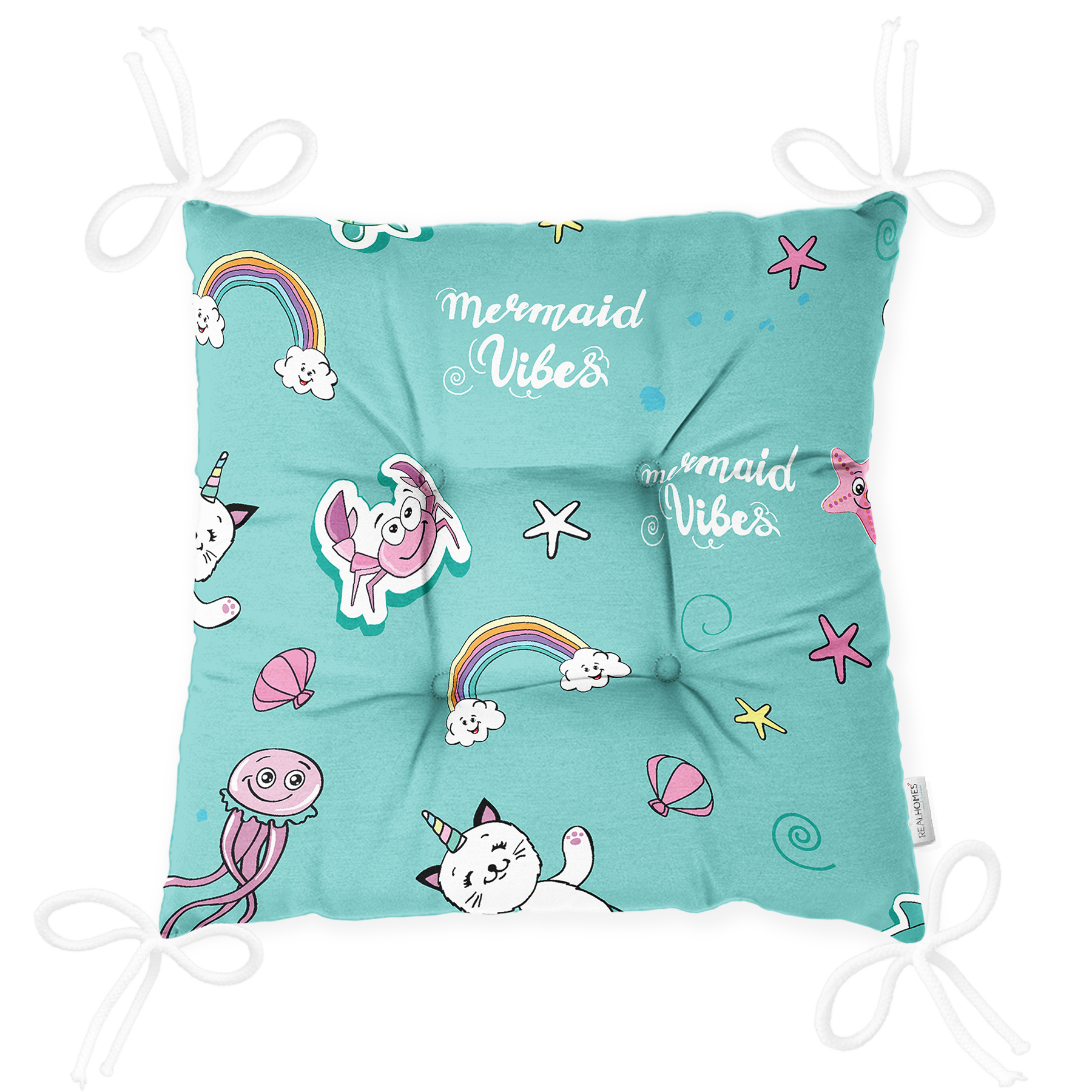 Realhomes Deniz Motifli Özel Tasarım Dijital Baskılı Modern Pofuduk Sandalye Minderi