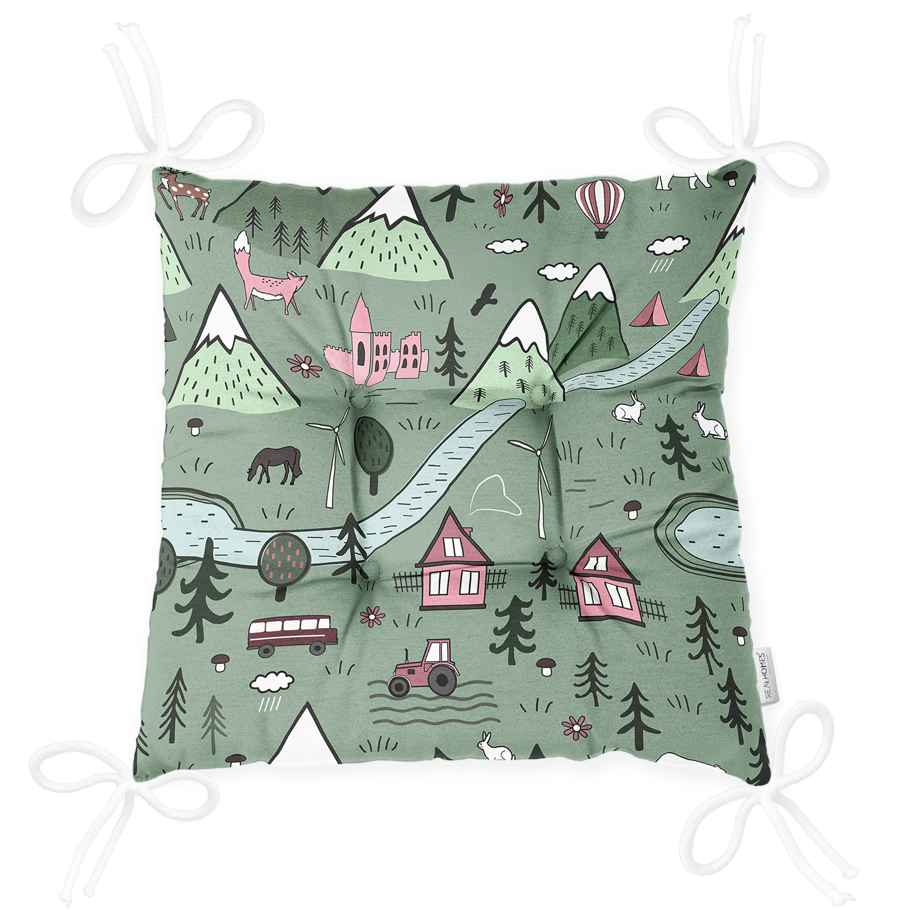 RealHomes Dijital Baskılı Pofuduk Düğmeli Sandalye Minderi