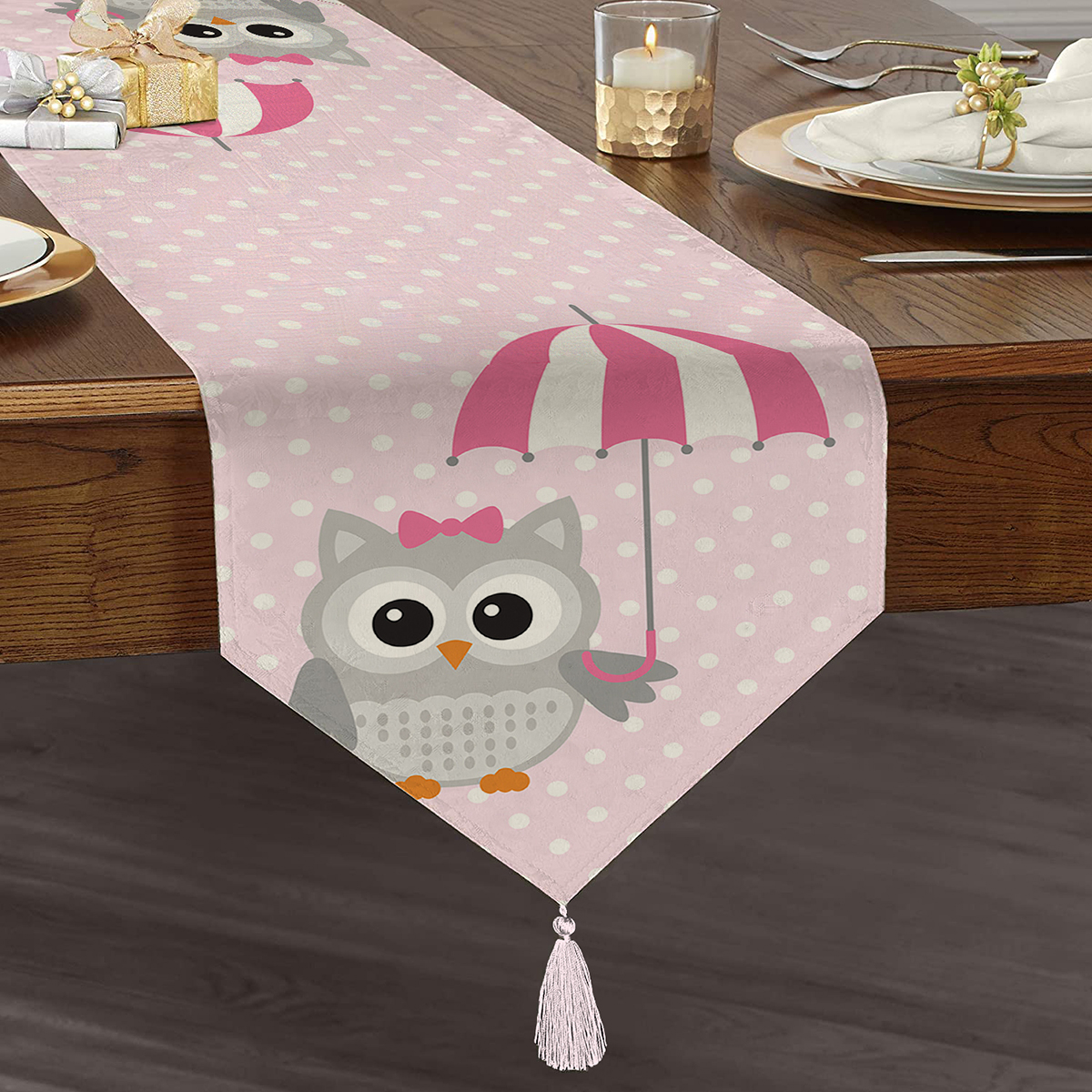 Leke tutmaz özellikli dijital baskılı kumaştan üretilen püsküllü üçgen runnerlar, mutfağınızda, ve yemek odalarında zevkle kullanabileceğiniz şık ve kaliteli ürünlerdir. Günlük kullanıma uygun olduğu gibi özel davetlerinizde de zevkinizi ortaya koyacaktır.