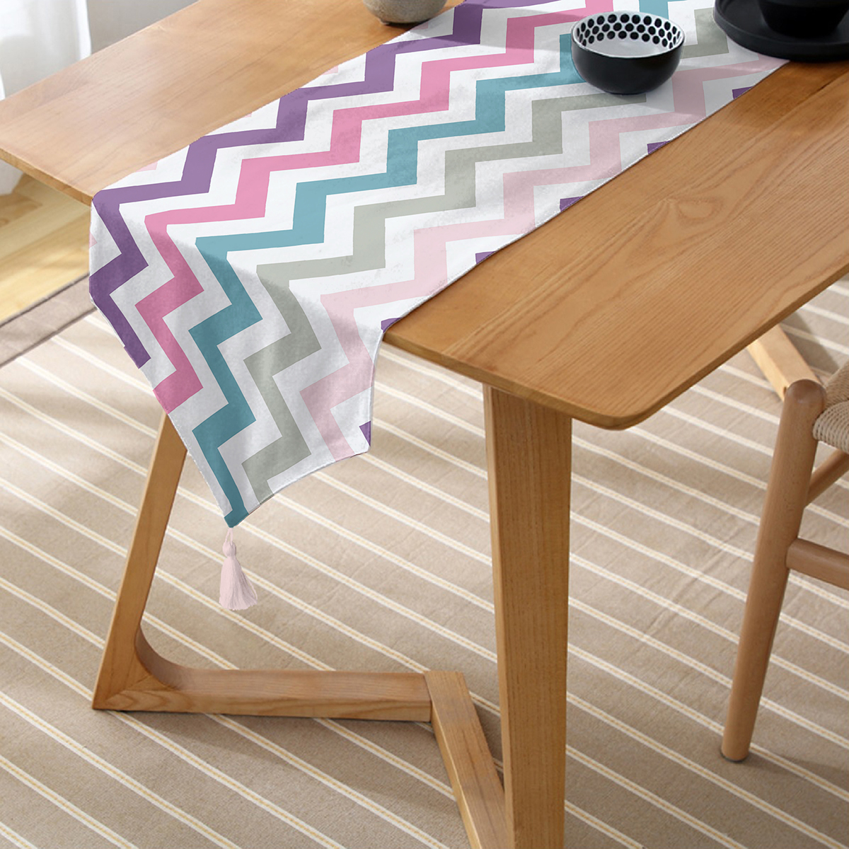 RealHomes Dijital Baskılı Özel Tasarım Püsküllü Şönil Üçgen Runner