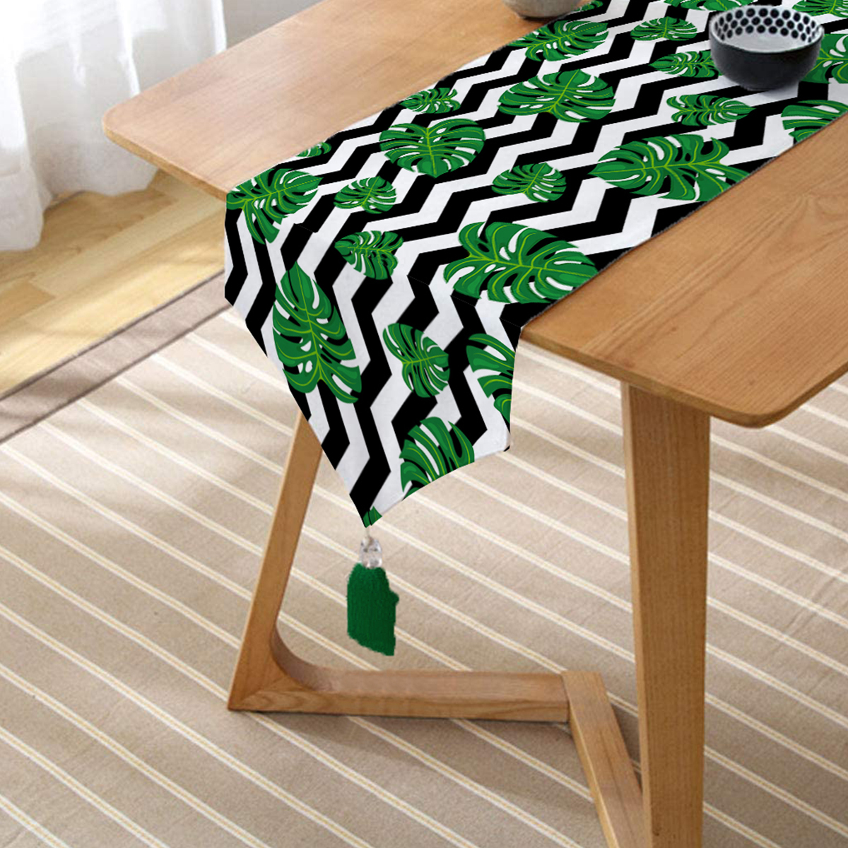 RealHomes Dijital Baskılı Yaprak Desenli Püsküllü Şönil Üçgen Runner