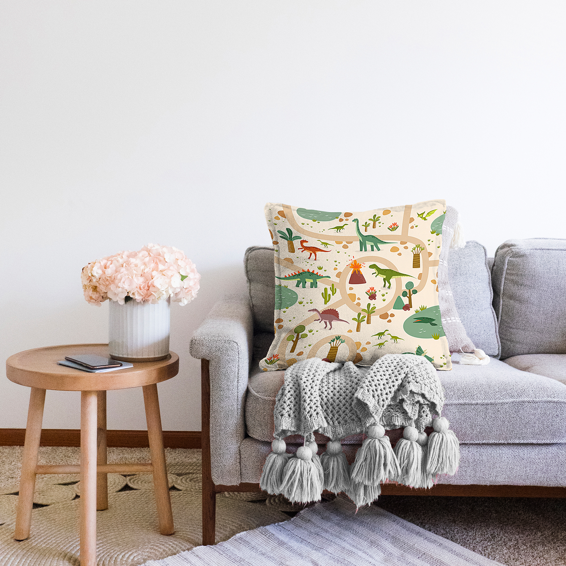 Realhomes Dinozor Desenli Oyun Yolları Tasarımlı Çocuk & Genç Odası Modern Yastık Kırlent Kılıfı