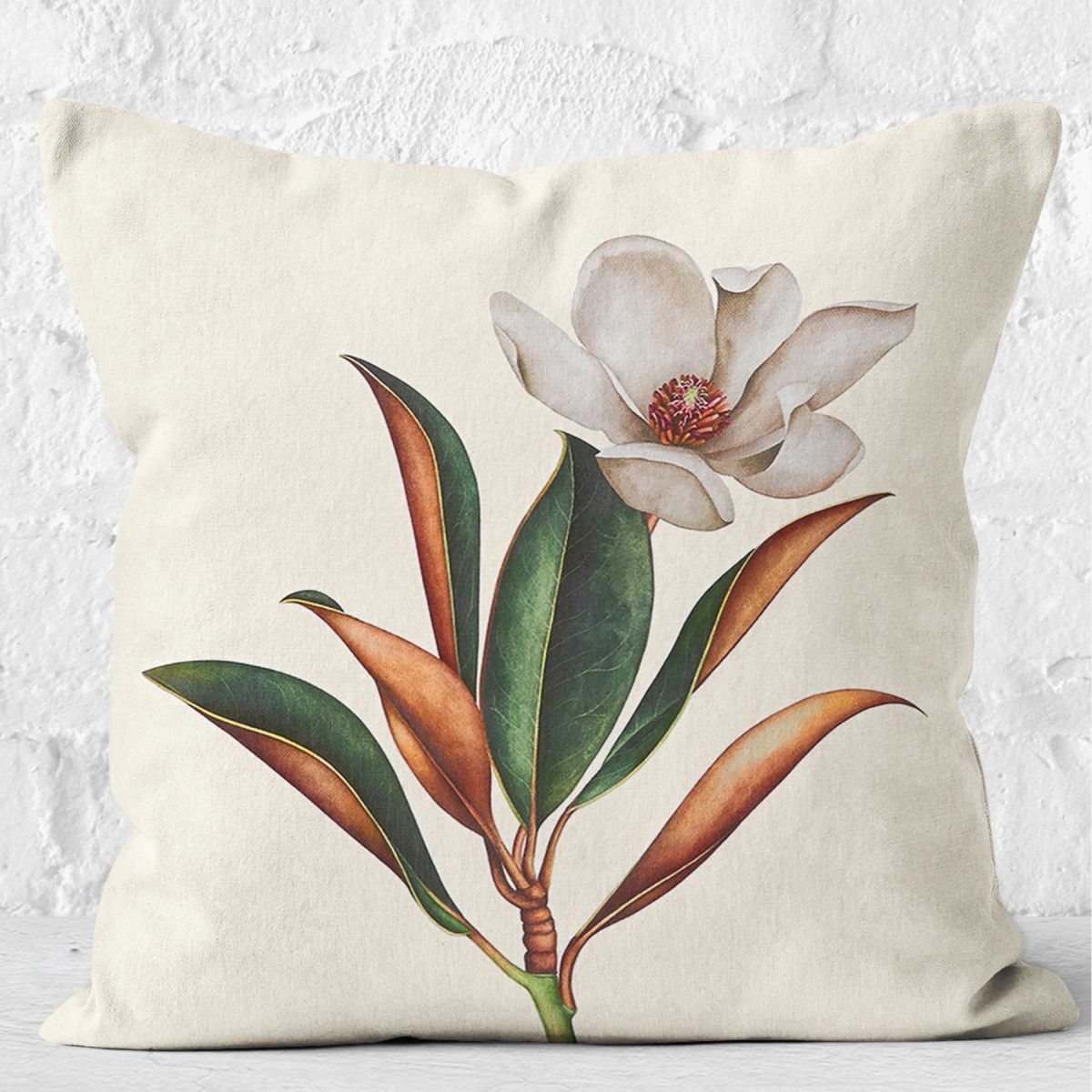 RealHomes Ekru- Yeşil Zeminde Kanvas Motifli Çiçek Desenli Dijital Baskılı Yastık Kırlent Kılıfı