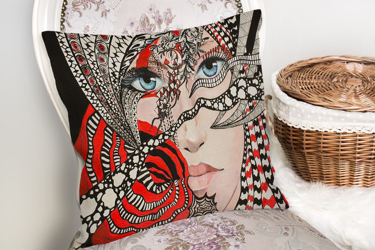 Realhomes Etnik Kadın Motifli Dijital Baskılı Modern Yastık Kırlent Kılıfı