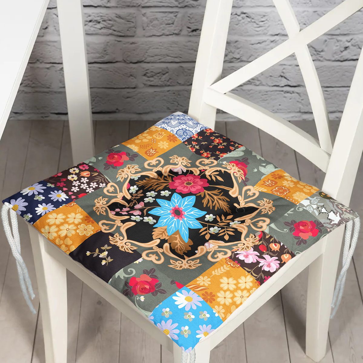 RealHomes Dijital Baskılı Pofuduk Düğmeli Sandalye Minderi