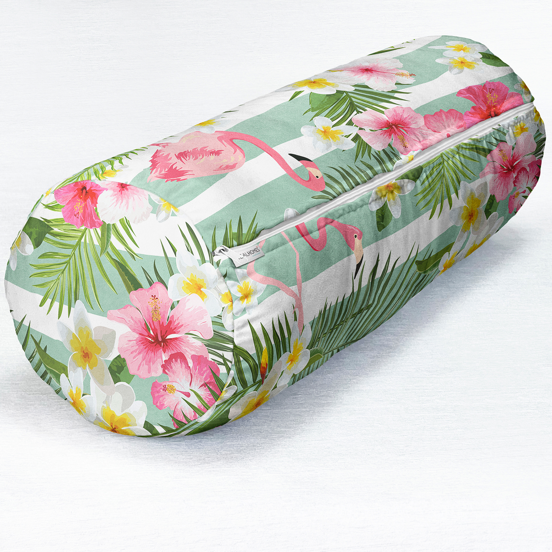 Realhomes Flamingo Desen Dijital Baskılı Modern İç Dolgulu Fermuarlı Çok Amaçlı Silindir Yastık Kırlent