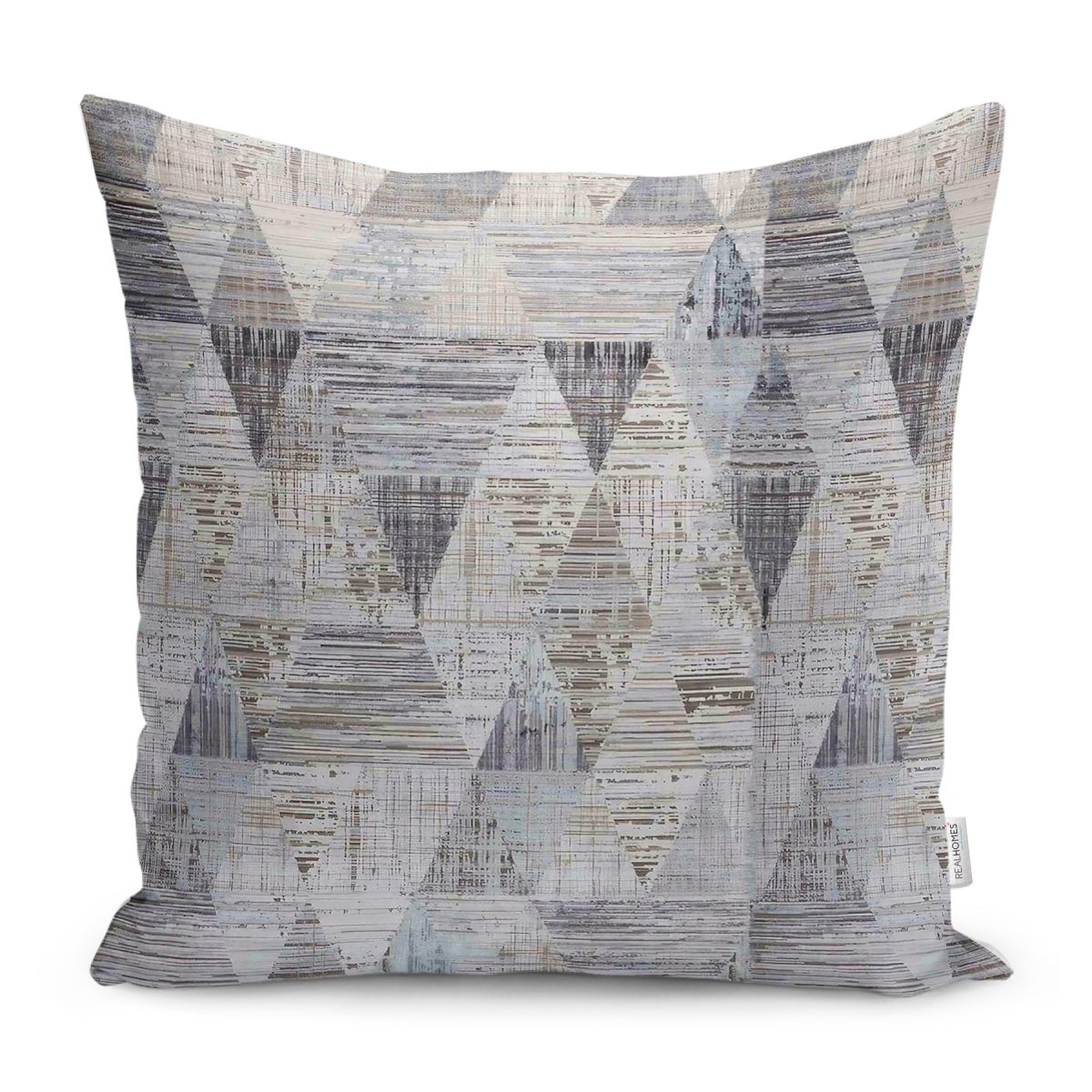 RealHomes Füme Zeminde Eskitme Motifli Retro Desenli Dijital Baskılı Yastık Kırlent Kılıfı Realhomes