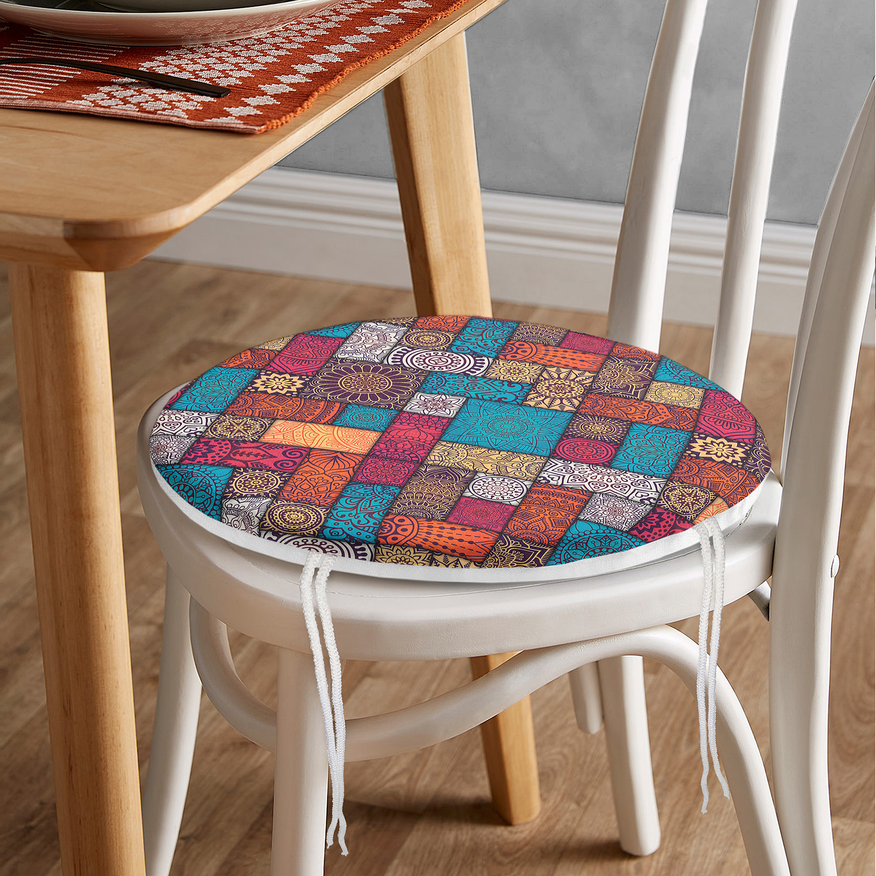 RealHomes Dijital Baskılı Yuvarlak Fermuarlı Sandalye Minderi