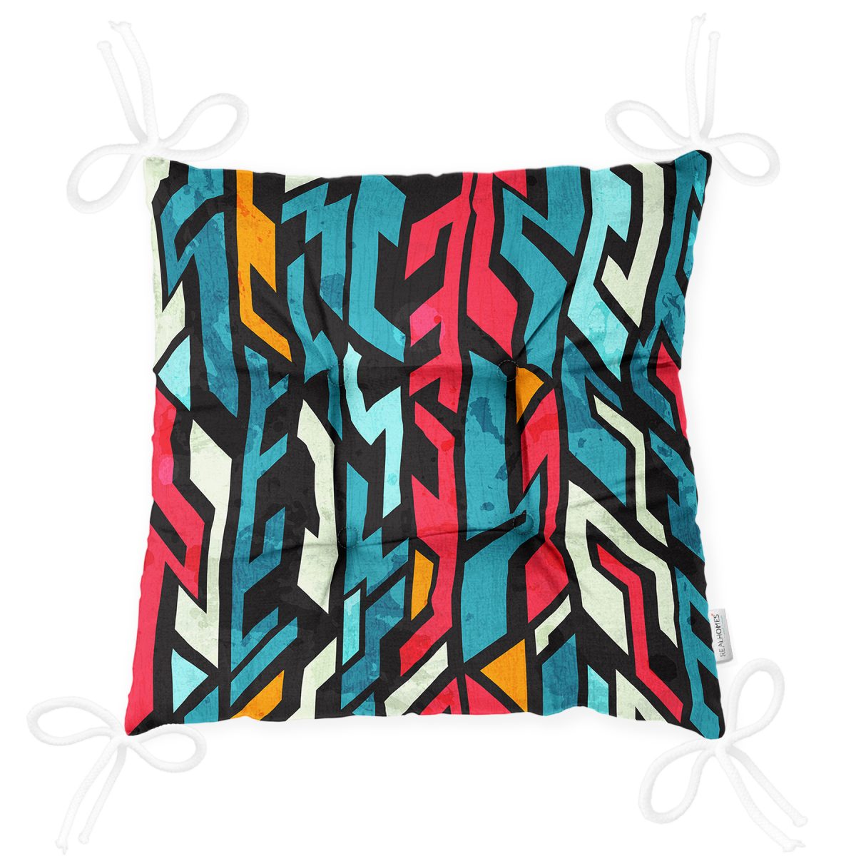 Realhomes Geometrik Motifler Özel tasarım Dijital Baskılı Pofuduk Sandalye Minderi