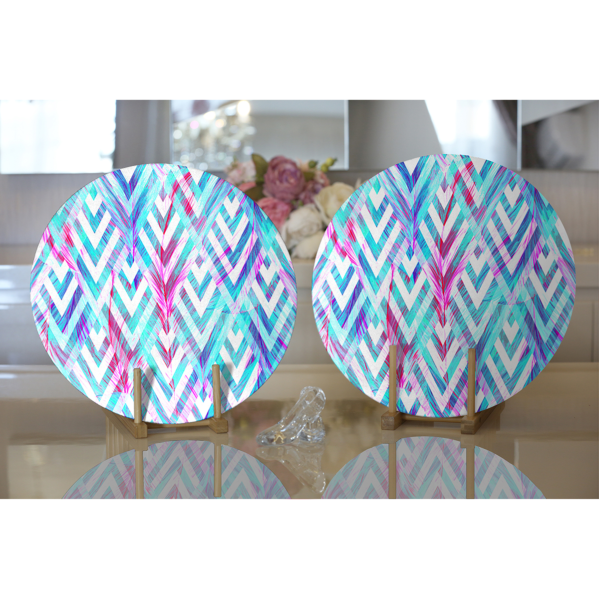 Realhomes Geometrik Zeminde Tüy Desenli Modern 2’li Yuvarlak Servis Altlığı – Supla