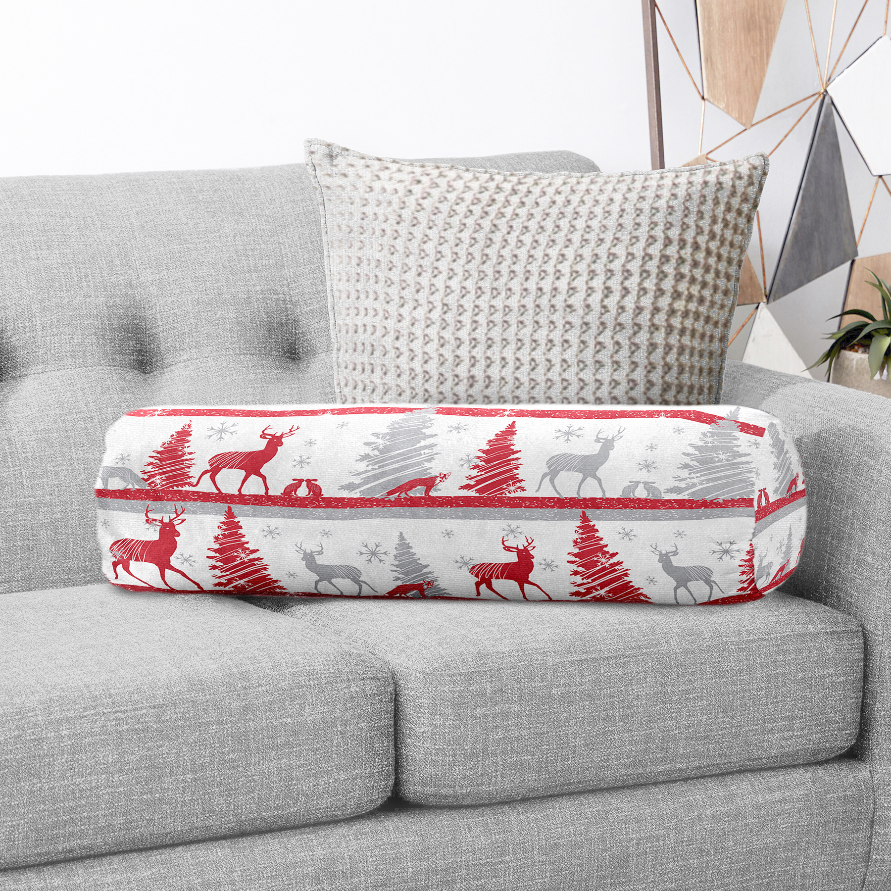 Realhomes Geyik ve Çam Ağaçları Dijital Baskılı Modern İç Dolgulu – Fermuarlı Süet Silindir Daire Yastık Kırlent