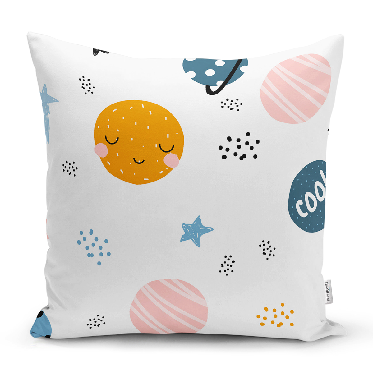 Realhomes Gezegen Çizimli Özel Tasarım Dijital Baskılı Modern Yastık Kırlent Kılıfı