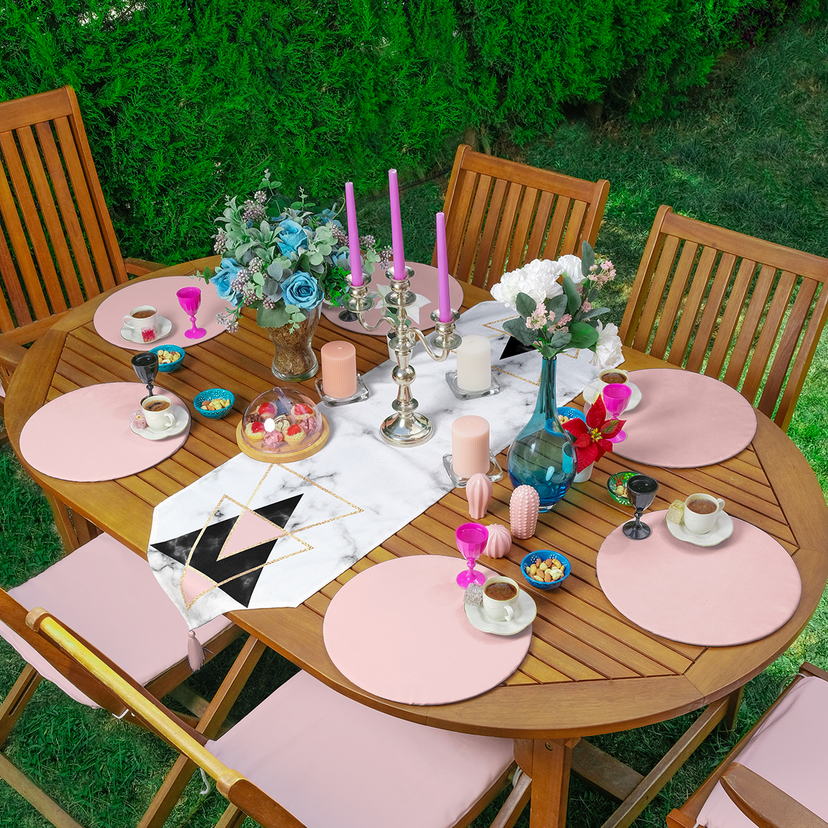 Realhomes Gold Detaylı Üçgen Tasarımlı Üçgen Püsküllü Runner 1 Adet & 6 Adet Pembe Renkli Supla