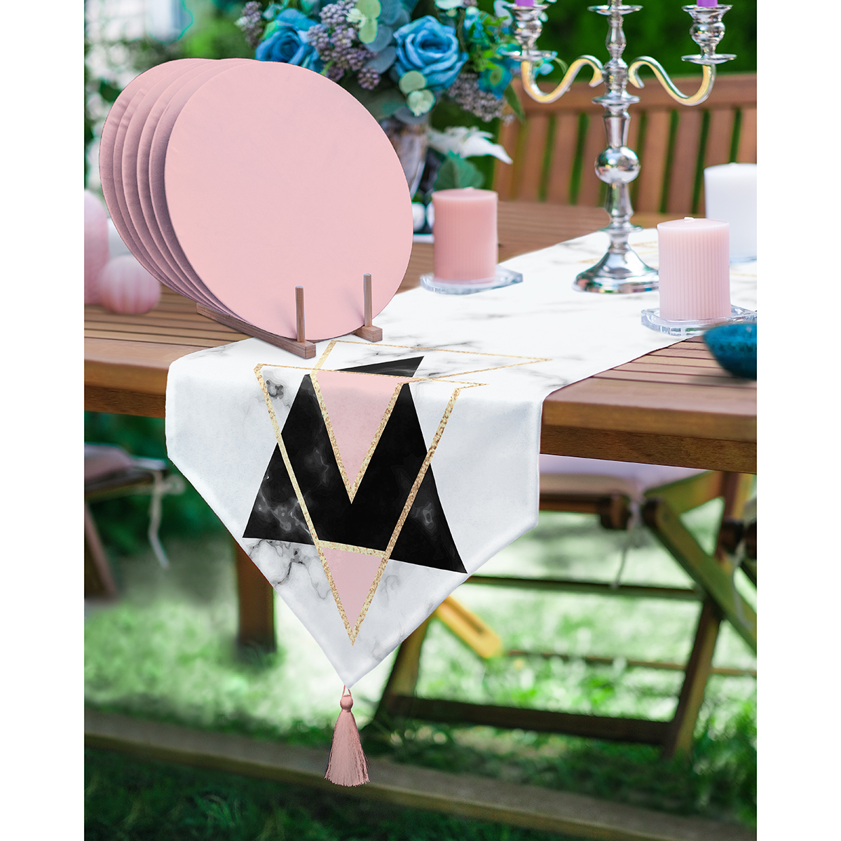 Realhomes Gold Detaylı Üçgen Tasarımlı Üçgen Püsküllü Runner 1 Adet & 6 Adet Pembe Renkli Supla Realhomes