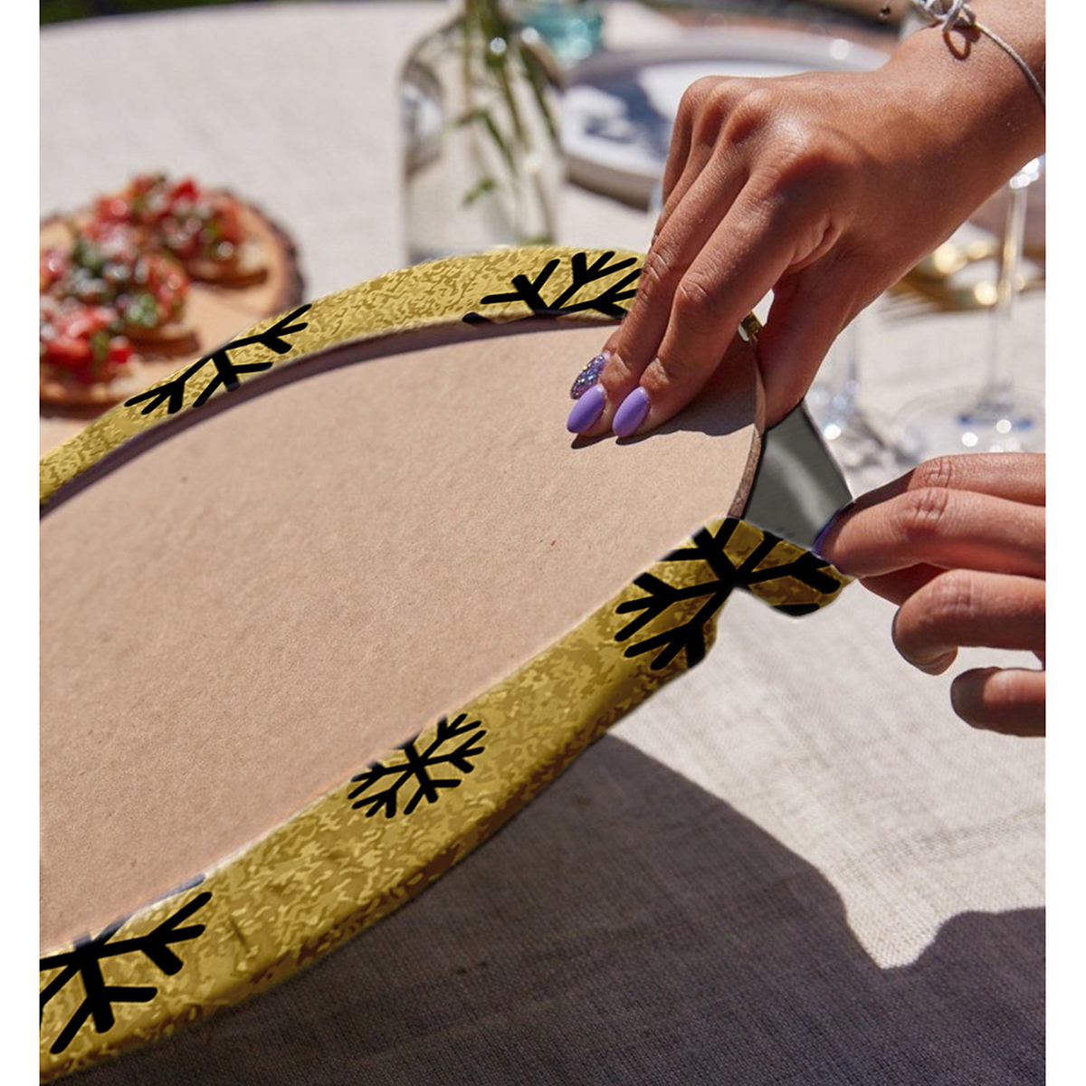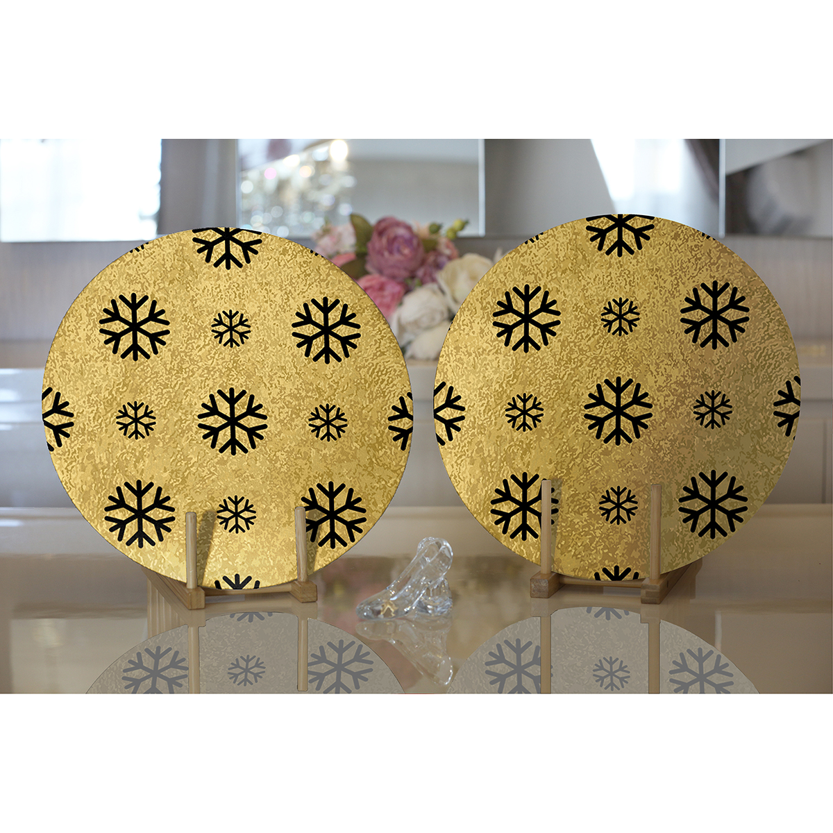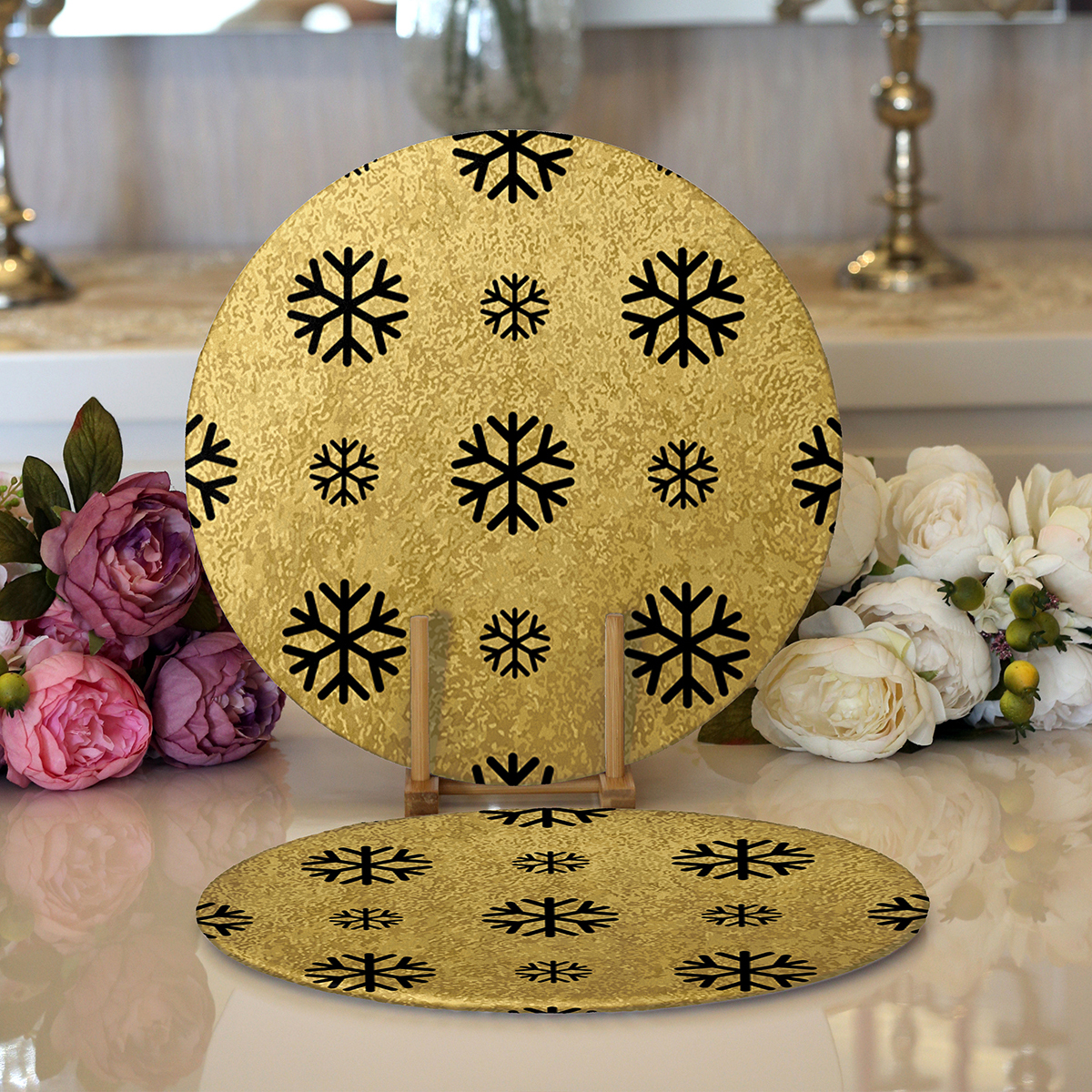 Realhomes Gold Zemin Üzerinde Siyah Renkli Kartanesi Desenli Modern 2'li Yuvarlak Servis Altlığı - Supla Realhomes