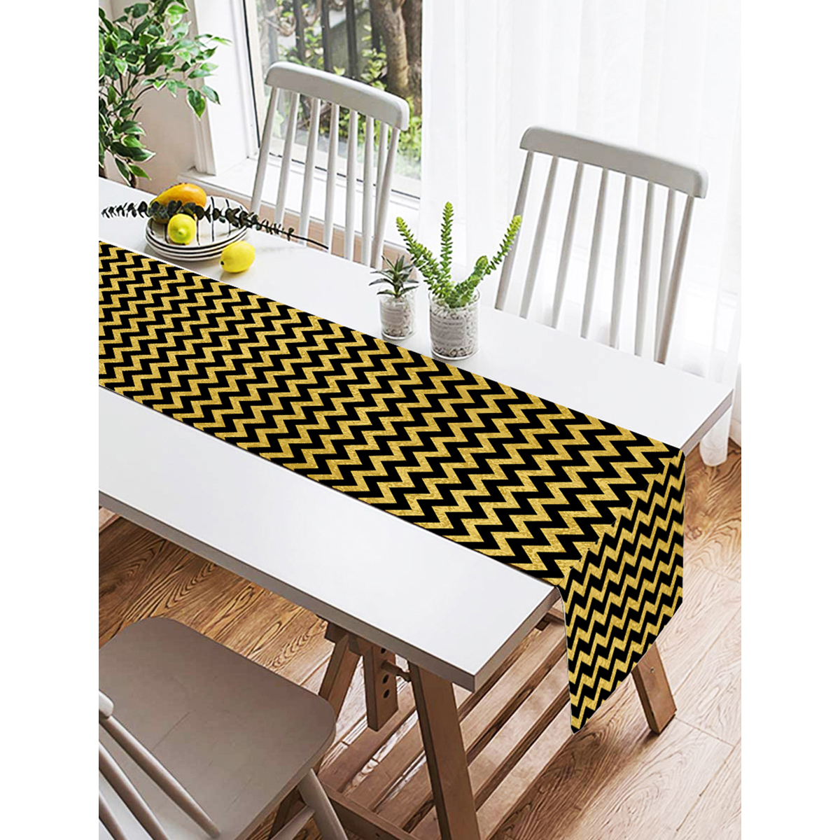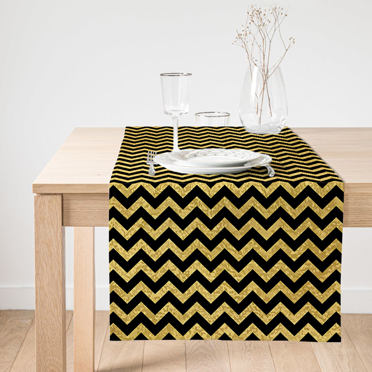 Realhomes Gold Zemin Üzerinde Siyah Zigzag Desenli Dijital Baskılı Özel Tasarım Süet Runner