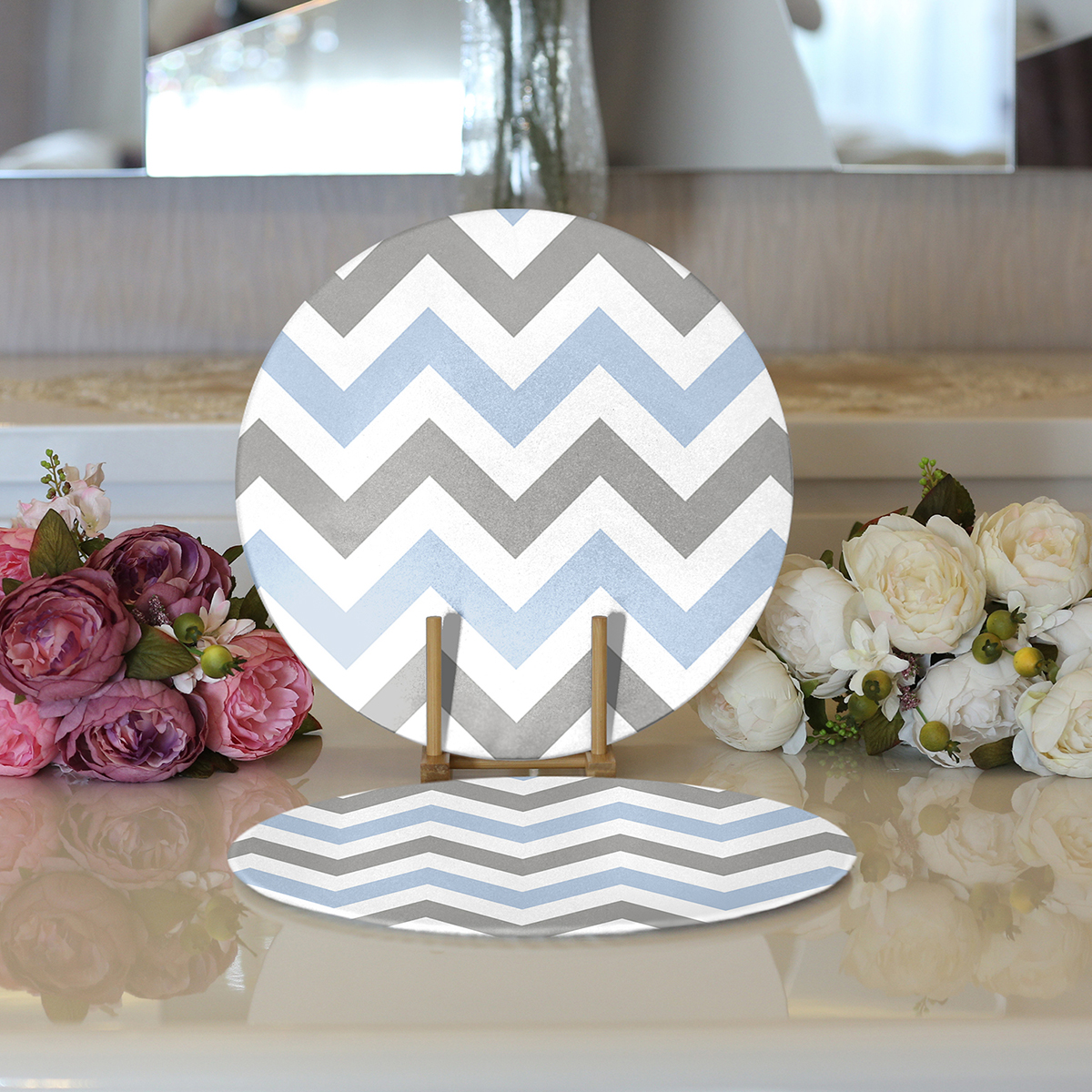 Realhomes Gri Mavi Zigzag Desenli Dijital Baskılı Modern 2’li Yuvarlak Servis Altlığı – Supla
