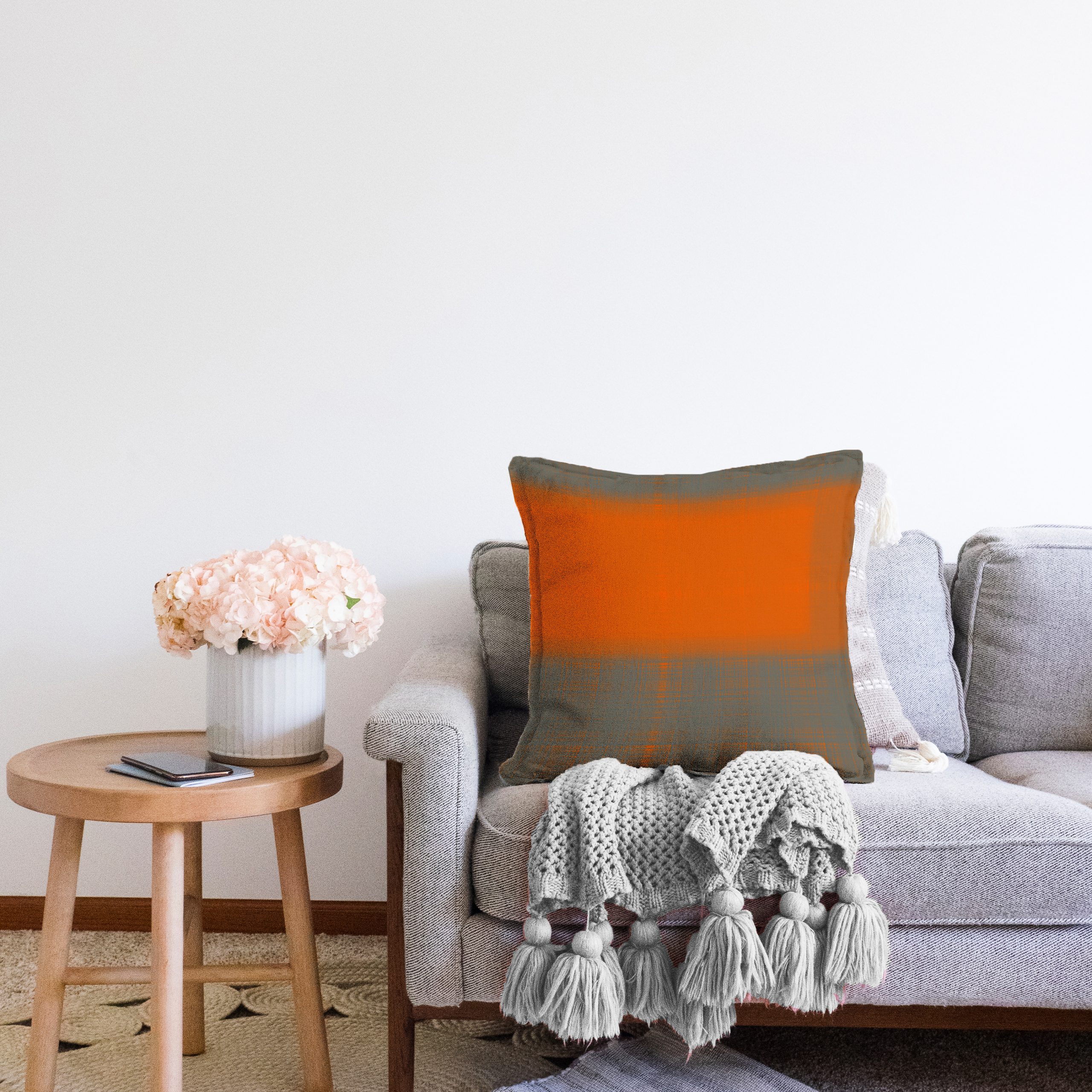 Realhomes Gri Zemin Turuncu Düz Renkli Çizgili Özel Tasarım Raşel Kadife Yastık Kırlent Kılıfı