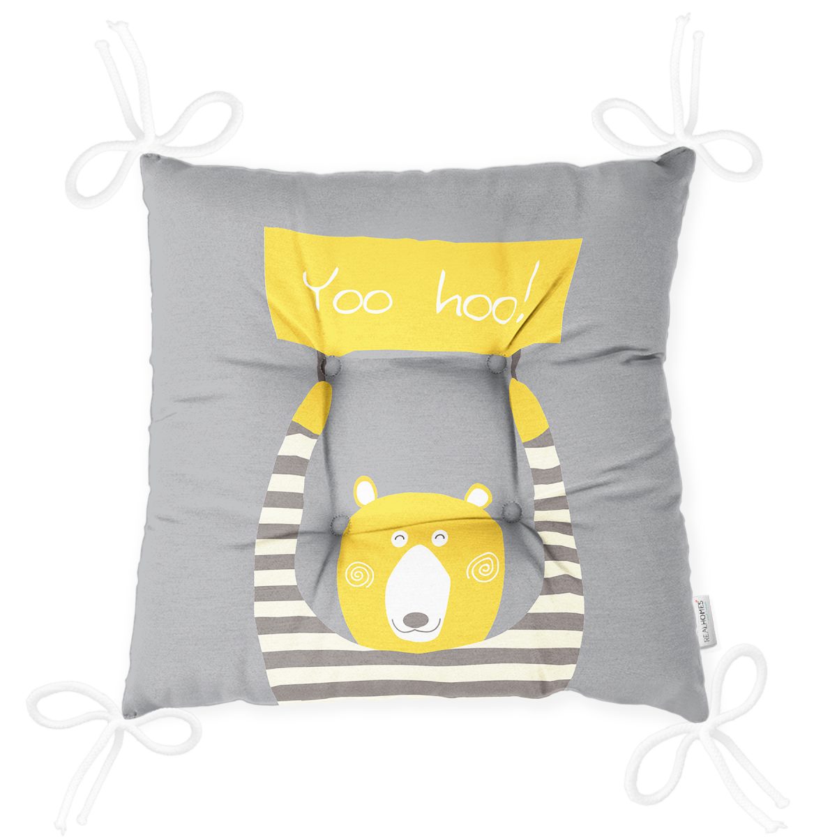 Realhomes Gri Zeminde Ayıcık Desenli Özel Tasarımlı Modern Pofuduk Sandalye Minderi Realhomes