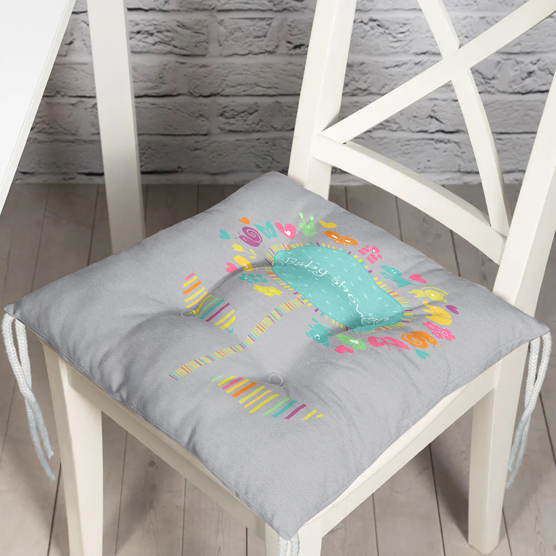 Realhomes Gri Zeminde Baby Shower Tasarımlı Modern Pofuduk Sandalye Minderi
