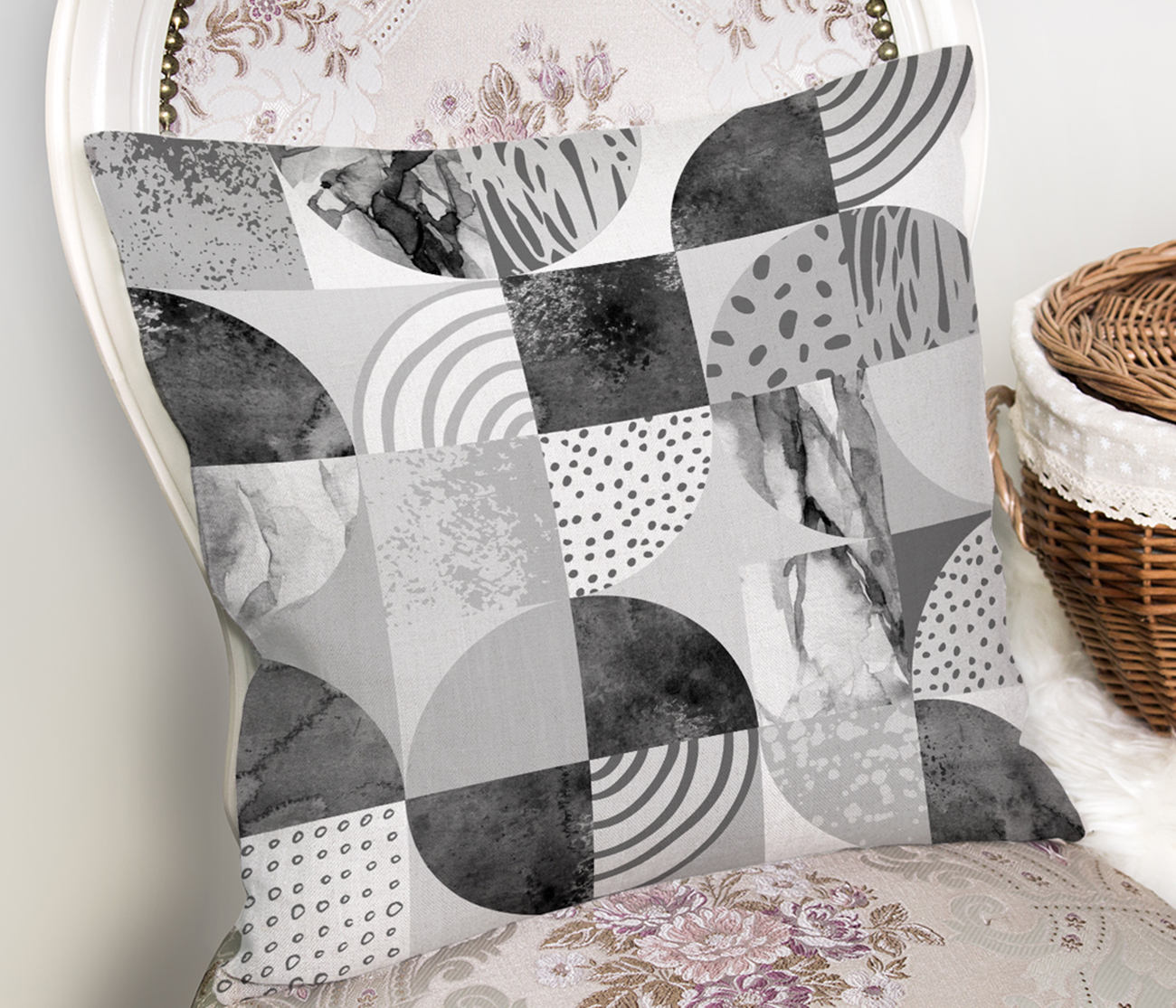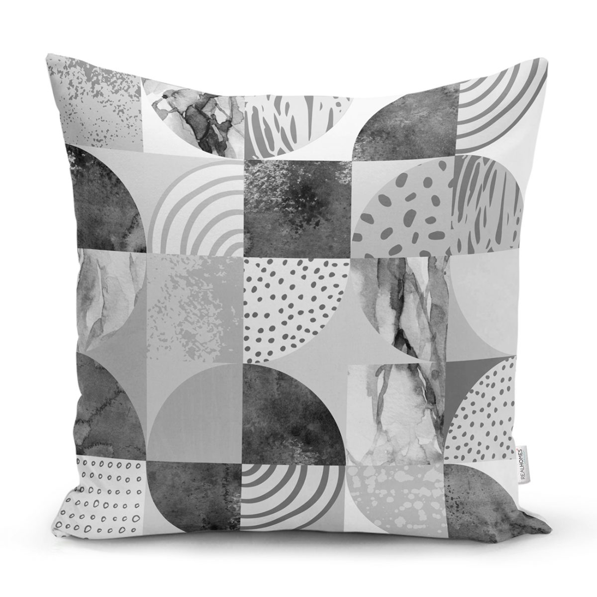 RealHomes Gri Zeminde Dekoratif Mermer Desenli Dijital Baskılı Kırlent Kılıfı Realhomes