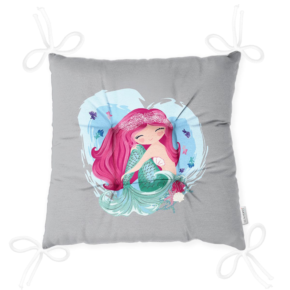 Realhomes Gri Zeminde Denizkızı Tasarımlı Dijital Baskılı Modern Pofuduk Sandalye Minderi