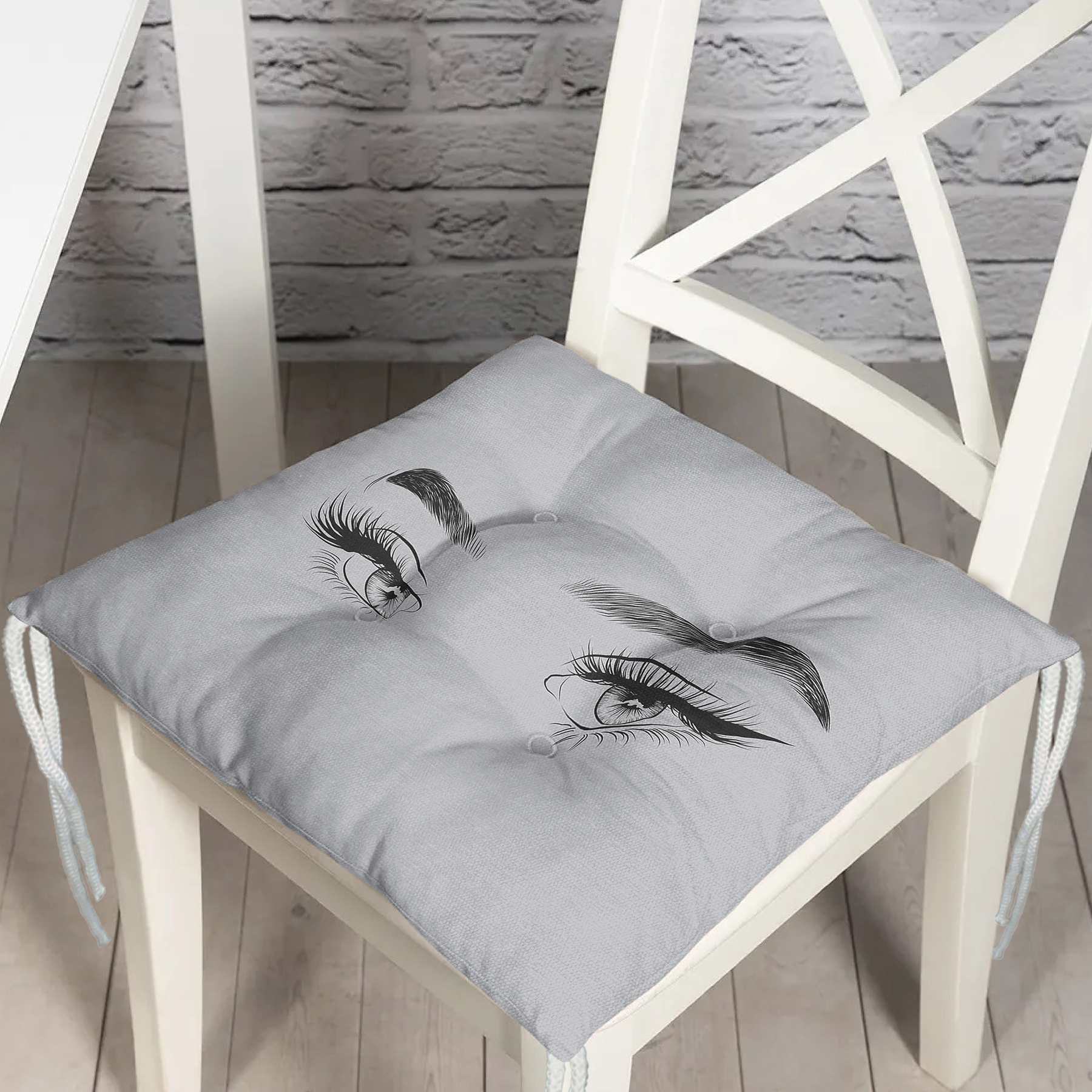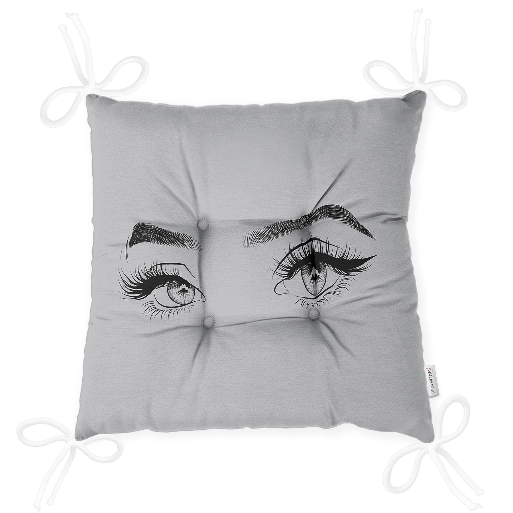 RealHomes Gri Zeminde Kirpik Motifli Özel Tasarım Pofuduk Sandalye Minderi Orijinal fiyat: 304,99 ₺.Şu andaki fiyat: 269,99 ₺.