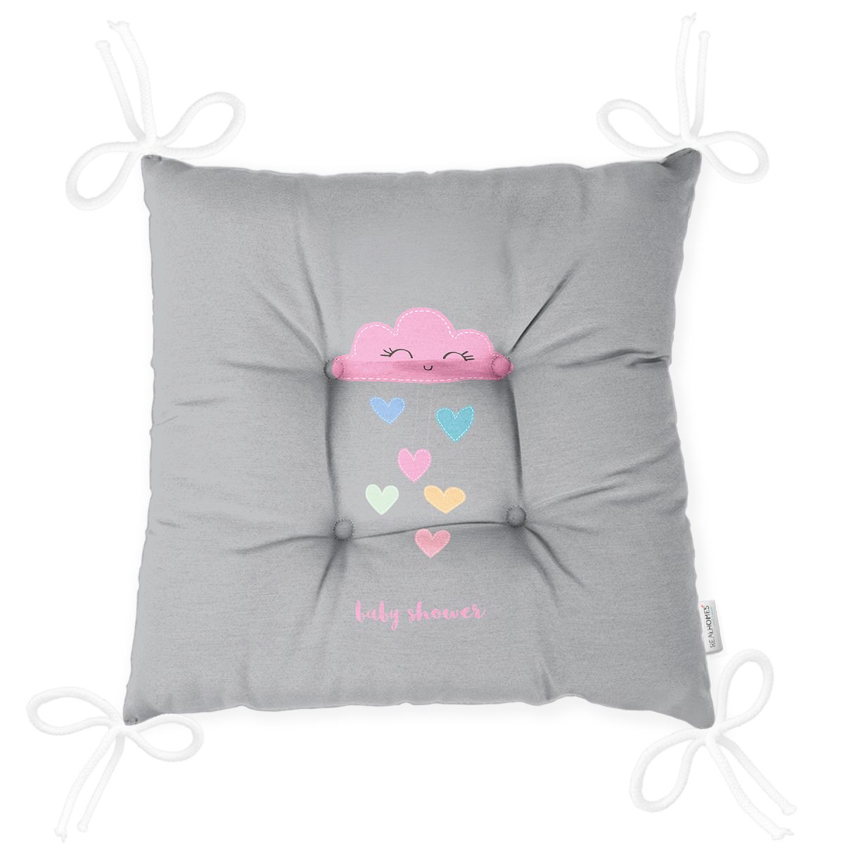 Realhomes Gri Zeminde Pembe Bulutlu Baby Shower Modern Pofuduk Sandalye Minderi Realhomes