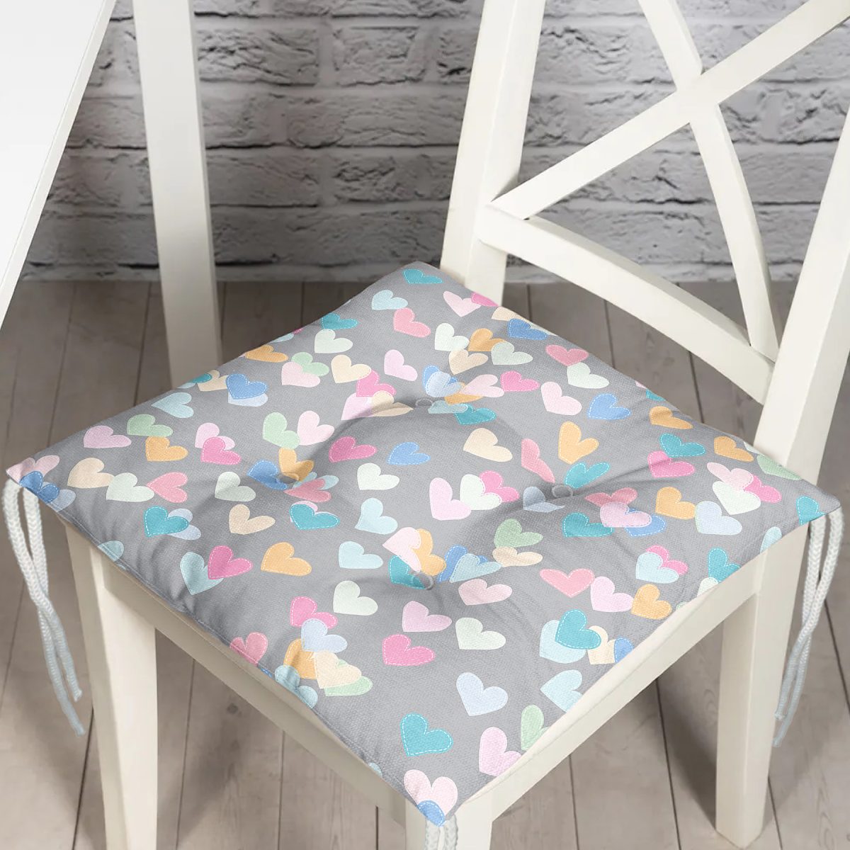 Realhomes Gri Zeminde Rengarenk Kalpler Modern Pofuduk Sandalye Minderi Realhomes