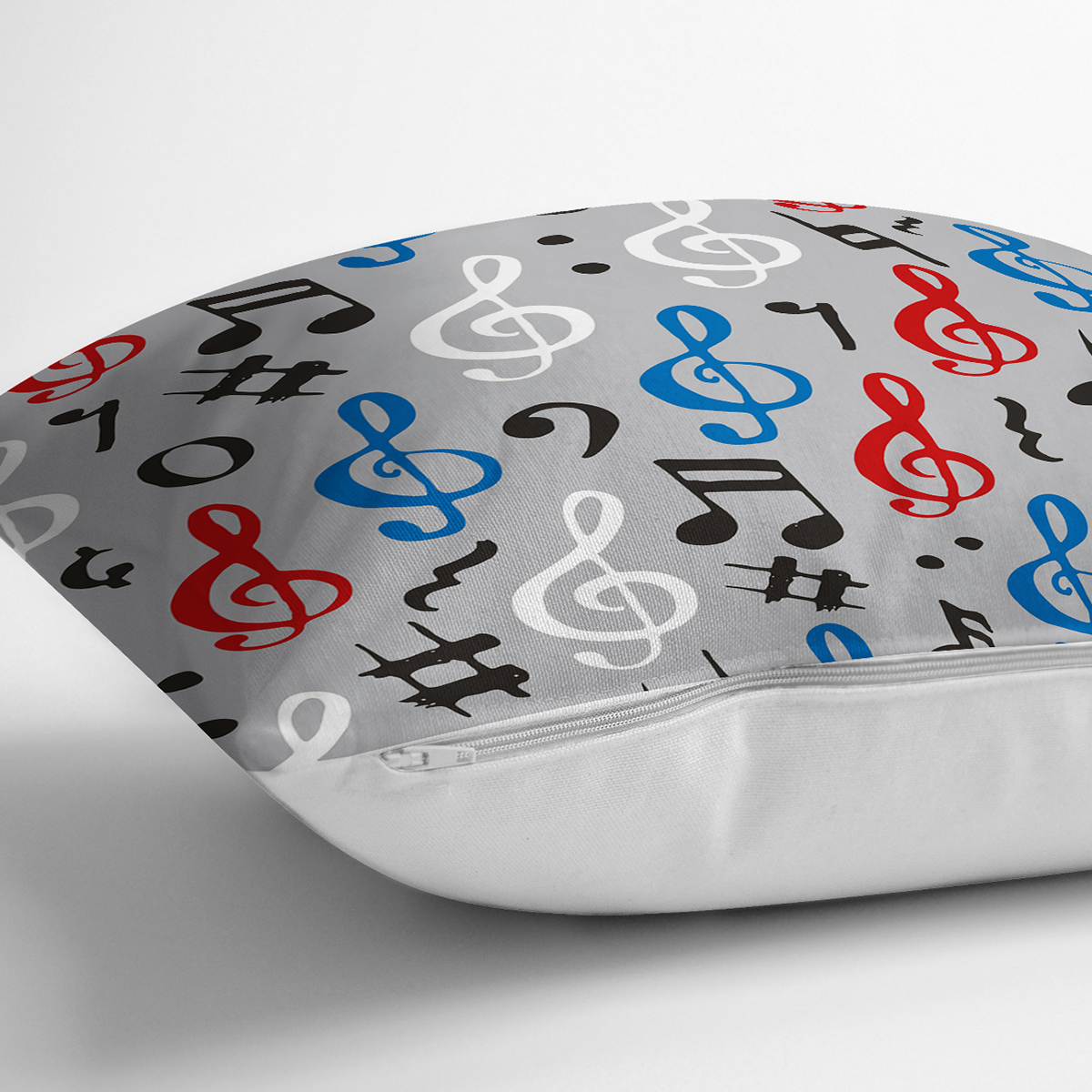 Realhomes Gri Zeminli Sol Anahtarlı Dijital Baskılı Modern Yastık Kılıfı