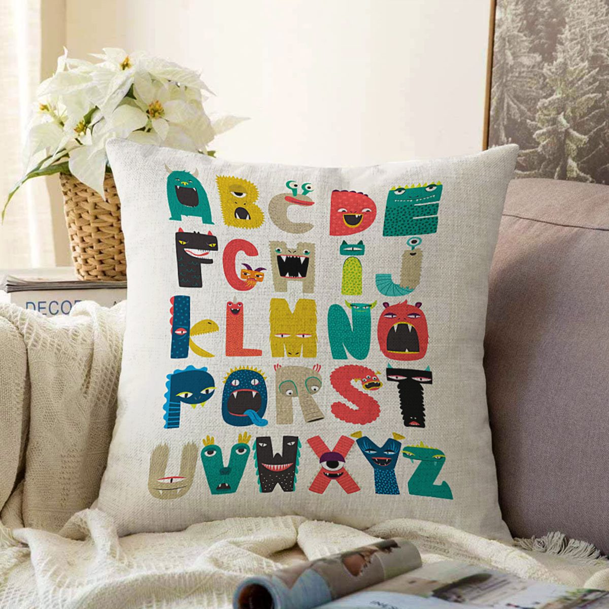 Realhomes Hayvan Tasarımlı Öğretici Harf Tasarımlı Çocuk & Genç Odası Modern Yastık Kırlent Kılıfı