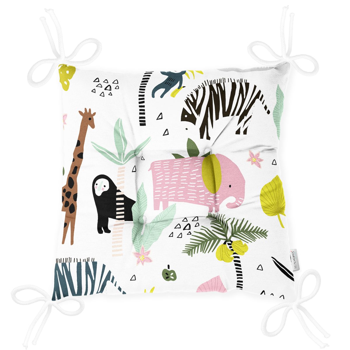 Realhomes Hayvanat Bahçesi Konseptli Hayvan Motifli Özel Tasarım Dijital Baskılı Modern Pofuduk Sandalye Minderi Realhomes