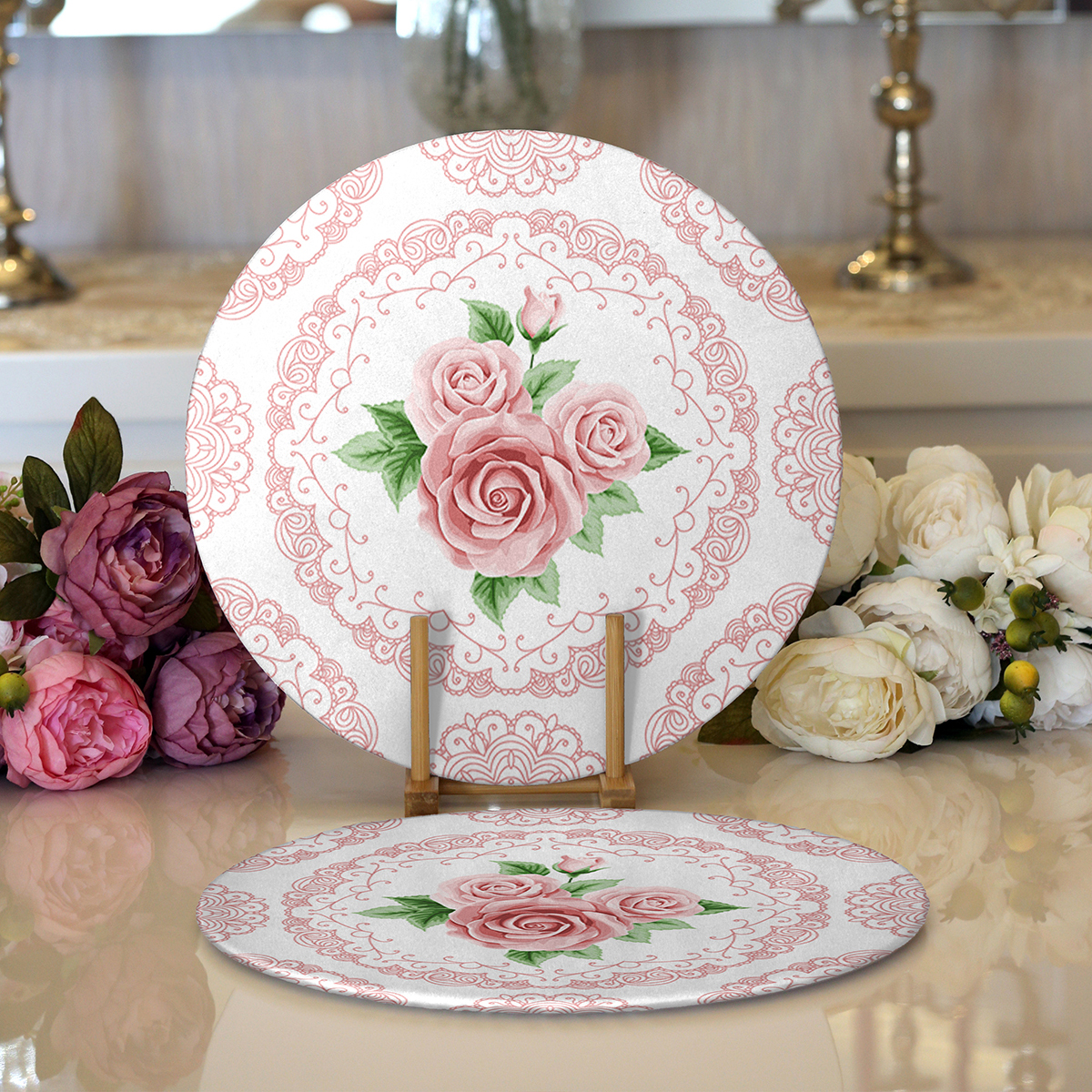 Realhomes Hint Motifli Gül Desenli Dijital Baskılı Modern 2’li Yuvarlak Servis Altlığı – Supla