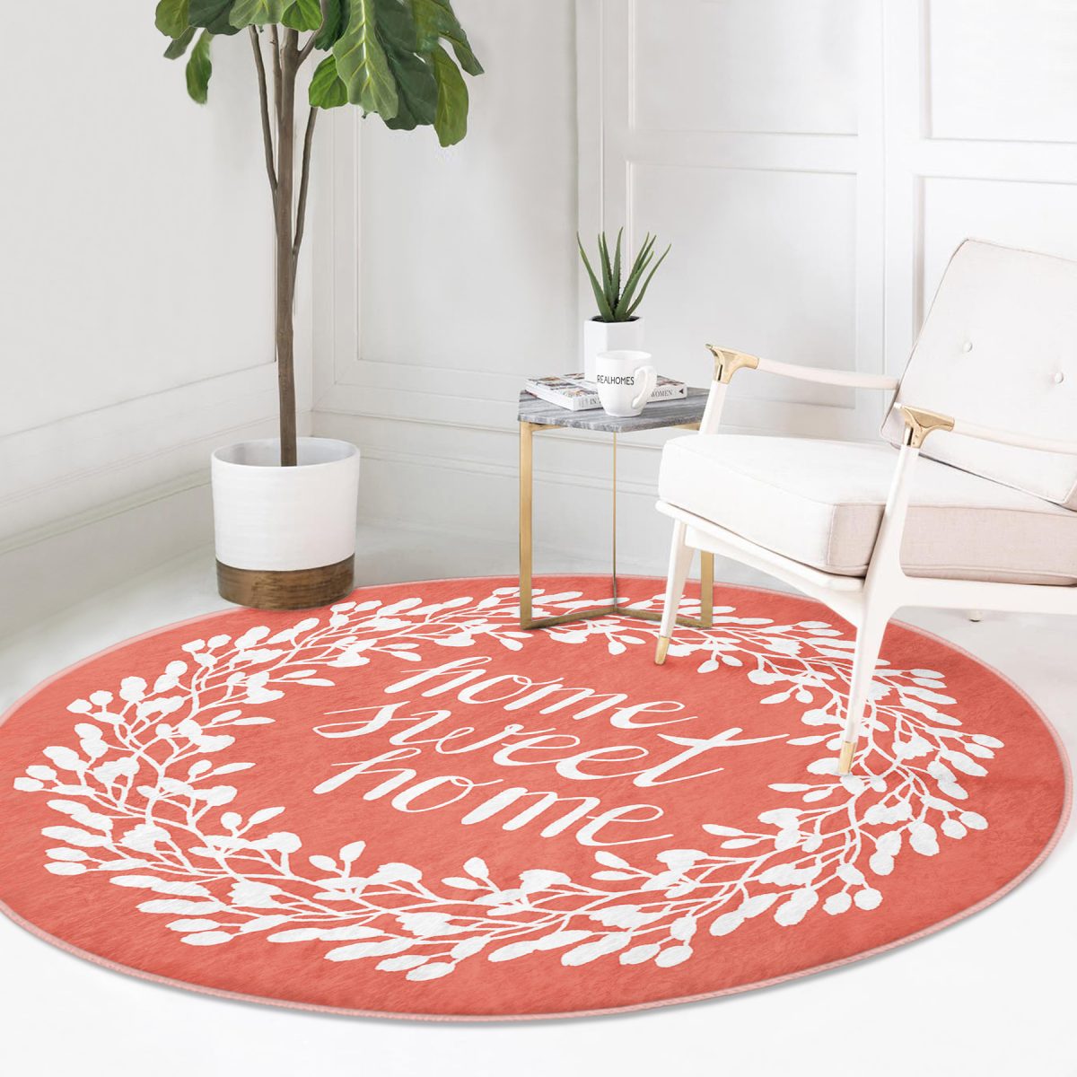 Realhomes Home Sweet Dijital Baskılı Turuncu Koridor ve Antre Yıkanabilir Kaymaz Tabanlı Yuvarlak Halı