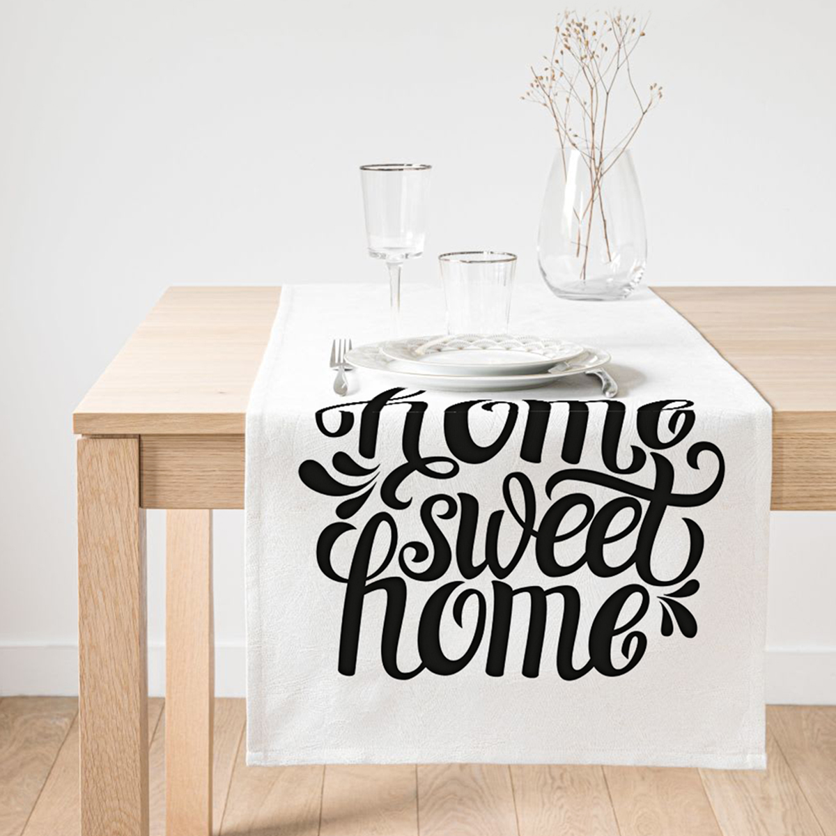 Realhomes Home Sweet Home Dijital Baskılı Dekoratif Süet Runner
