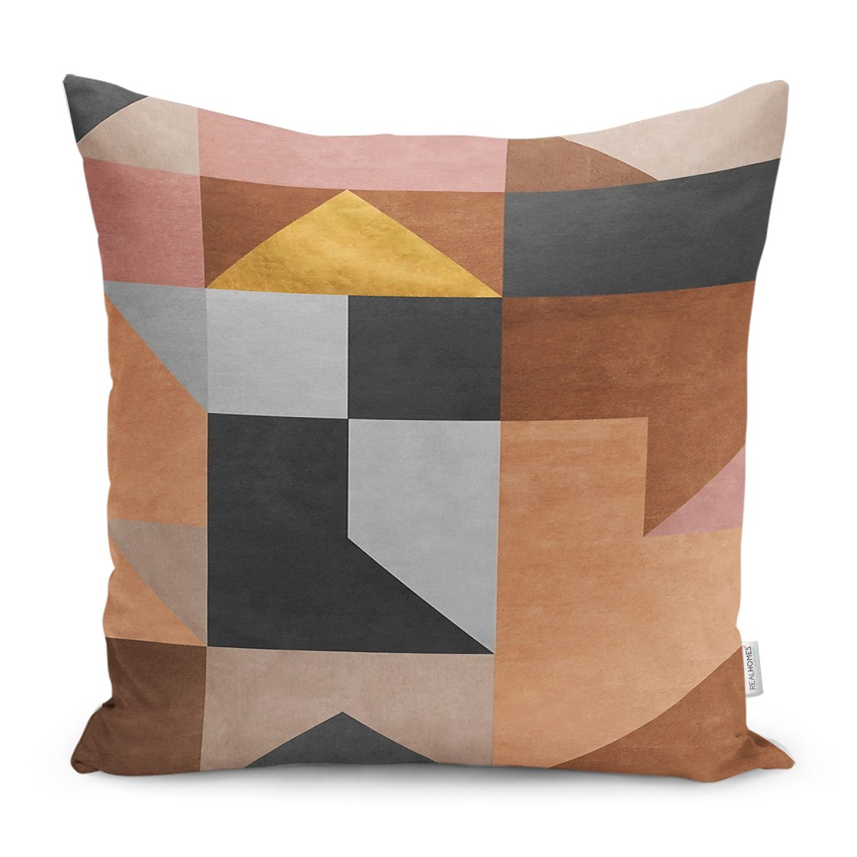 RealHomes Kahverengi Zeminde Geometrik Motifli Modern Desenli Dijital Baskılı Yastık Kırlent Kılıfı