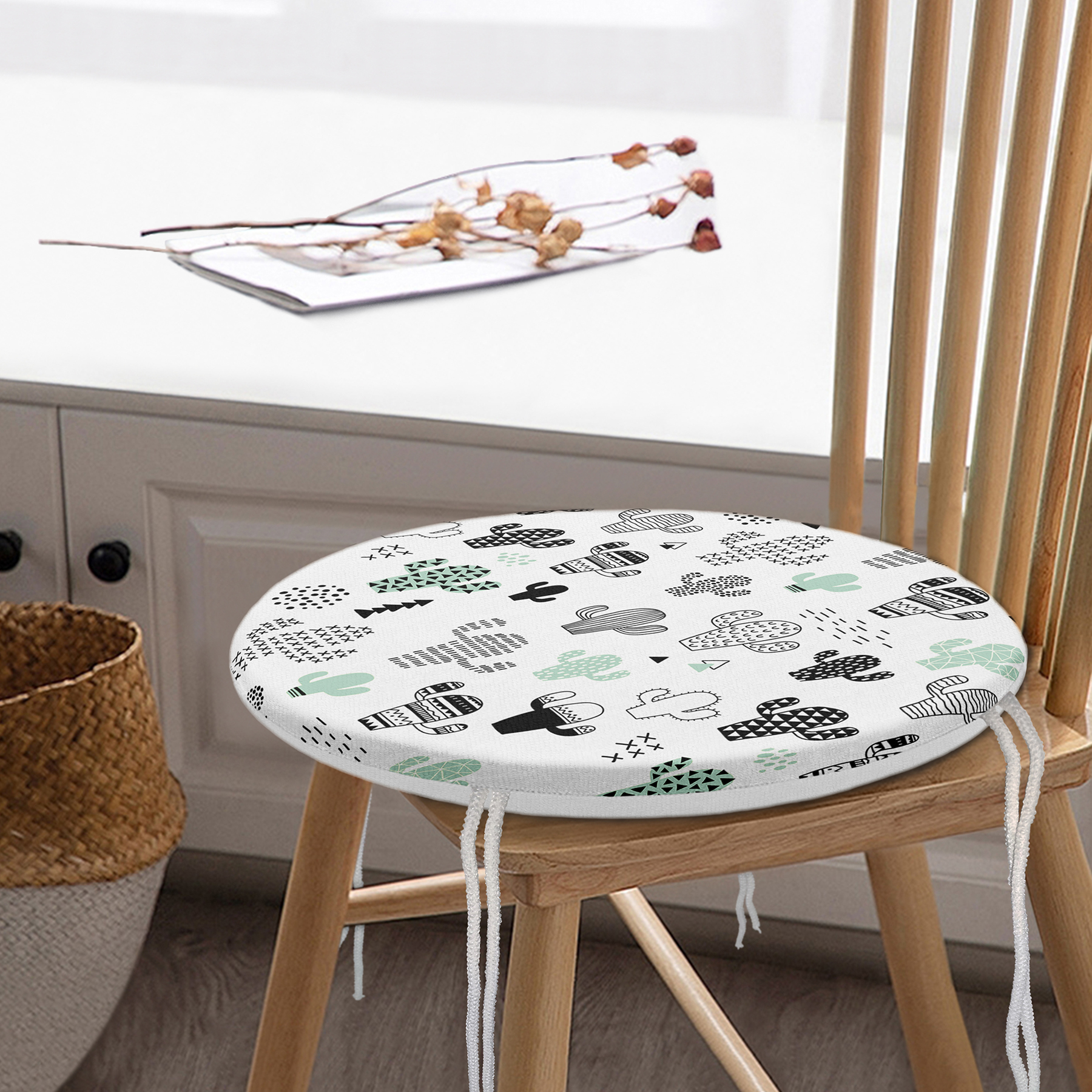 Realhomes Kaktüs Desenli Özel Tasarım Modern Yuvarlak Fermuarlı Sandalye Minderi