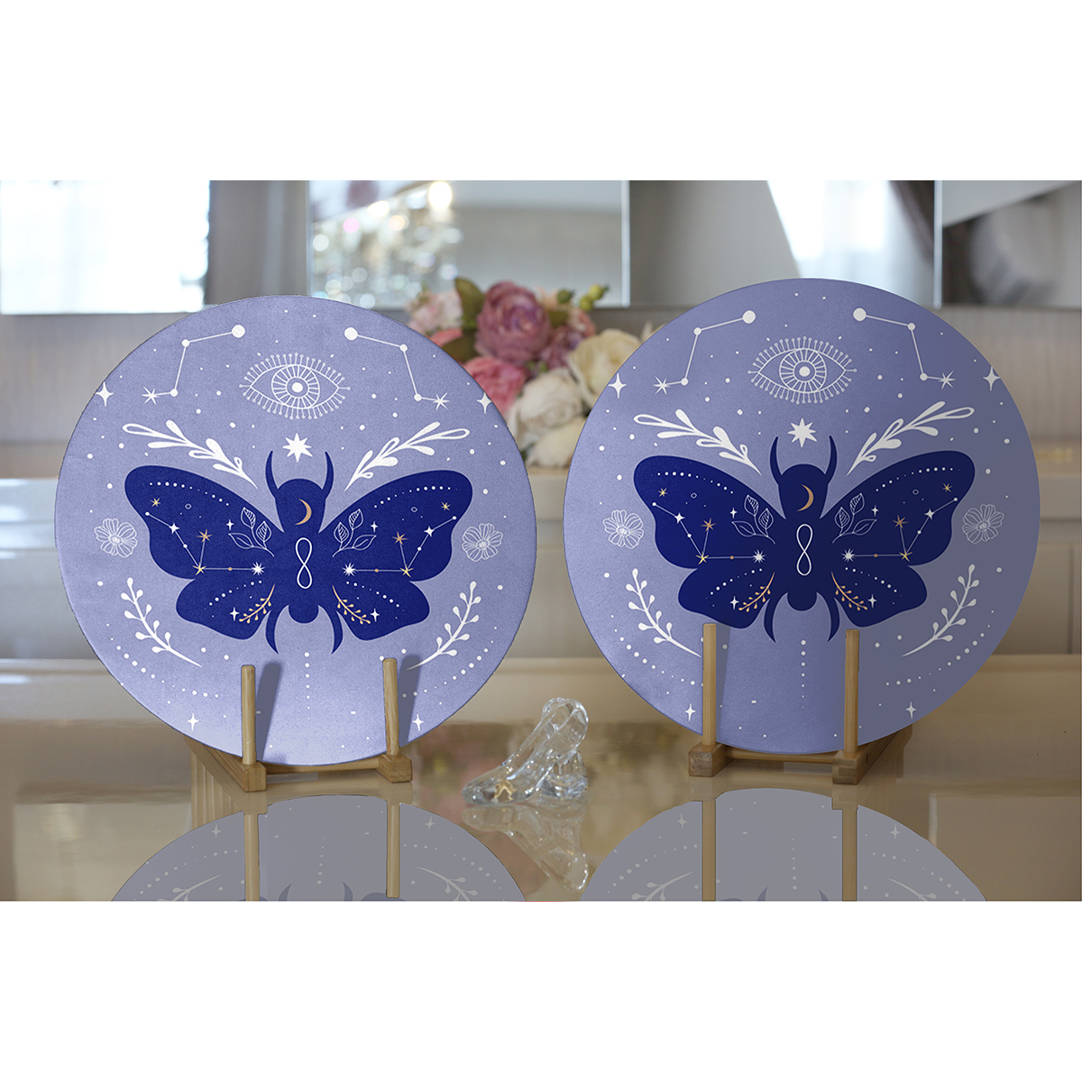 Realhomes Karolina Mavisi Zeminli Sonsuz Kelebek Desenli Modern 2'li Yuvarlak Servis Altlığı - Supla Realhomes