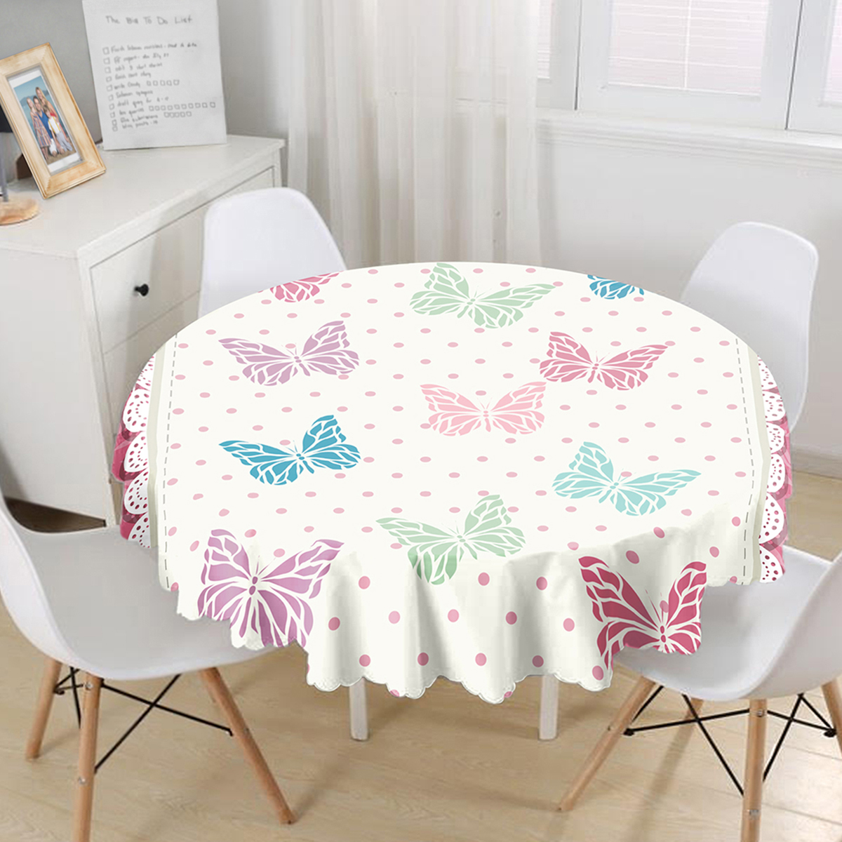 Realhomes Kelebek Tasarımlı Dijital Baskılı Yuvarlak Masa Örtüsü – Çap 140cm