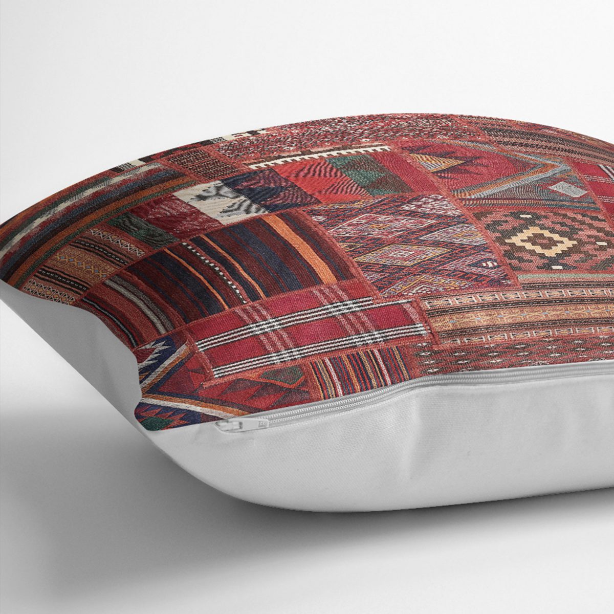 RealHomes Kiremit Zeminde Kilim Motifli Eskitme Desenli Dijital Baskılı Yastık Kırlent Kılıfı