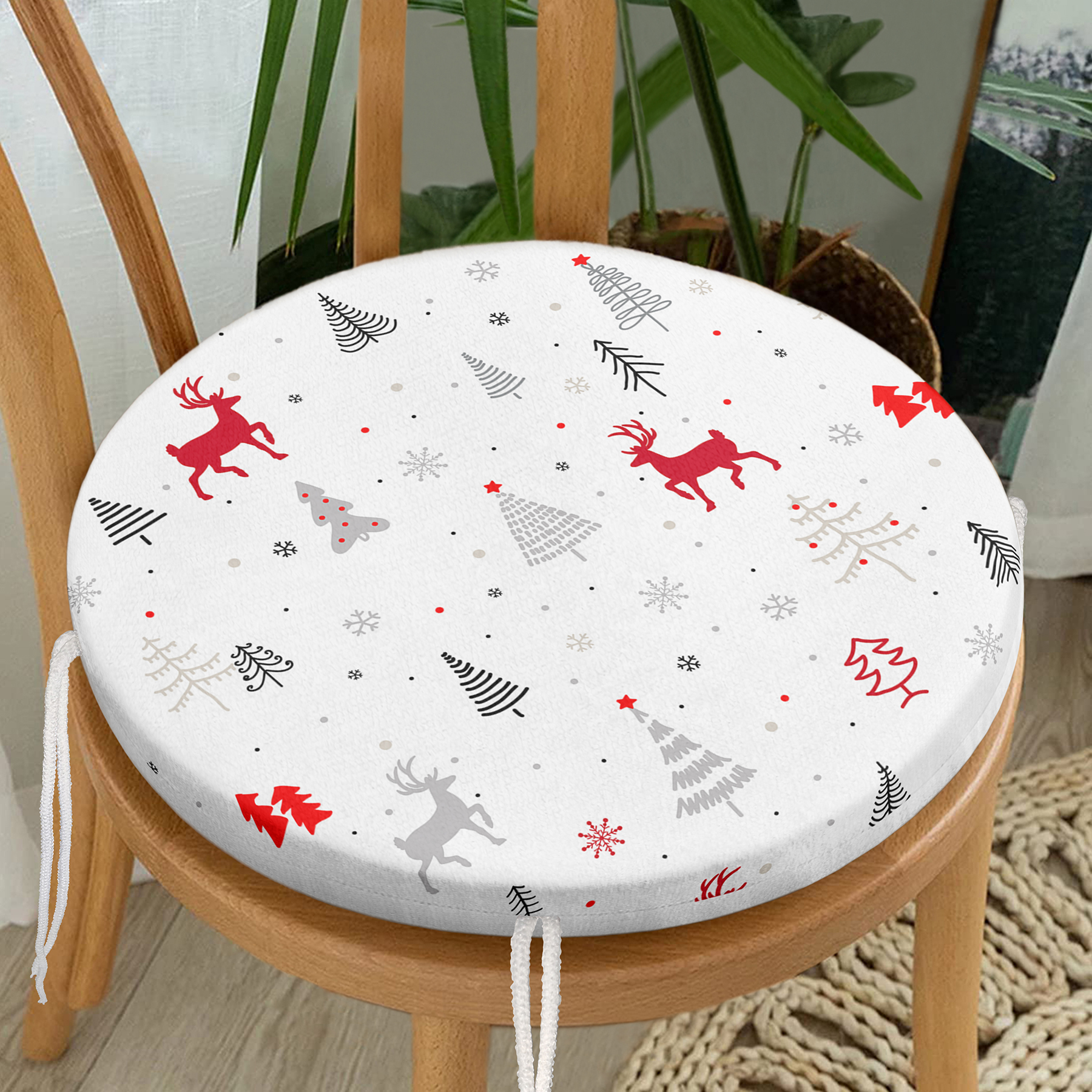 Realhomes Kırmızı Geyikler ve Ağaçlar Yılbaşı Konseptli Dijital Baskılı Modern Yuvarlak Fermuarlı Sandalye Minderi Realhomes