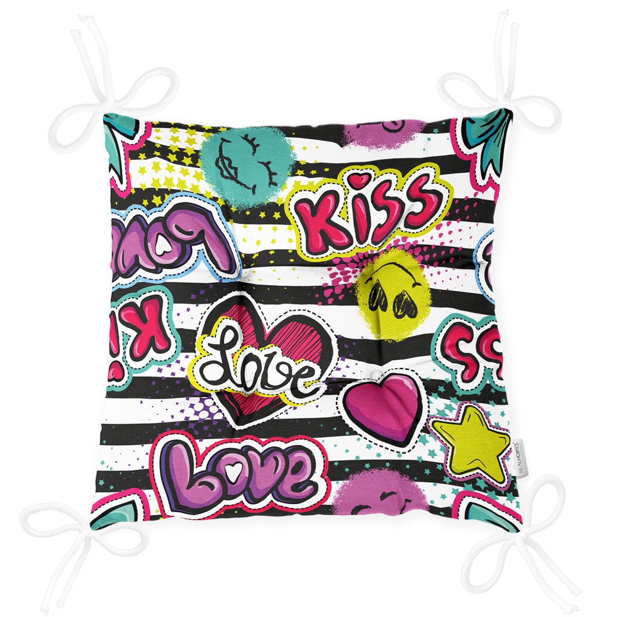 Realhomes Kiss Love Pop Art Tasarımlı Dijital Baskılı Modern Pofuduk Sandalye Minderi