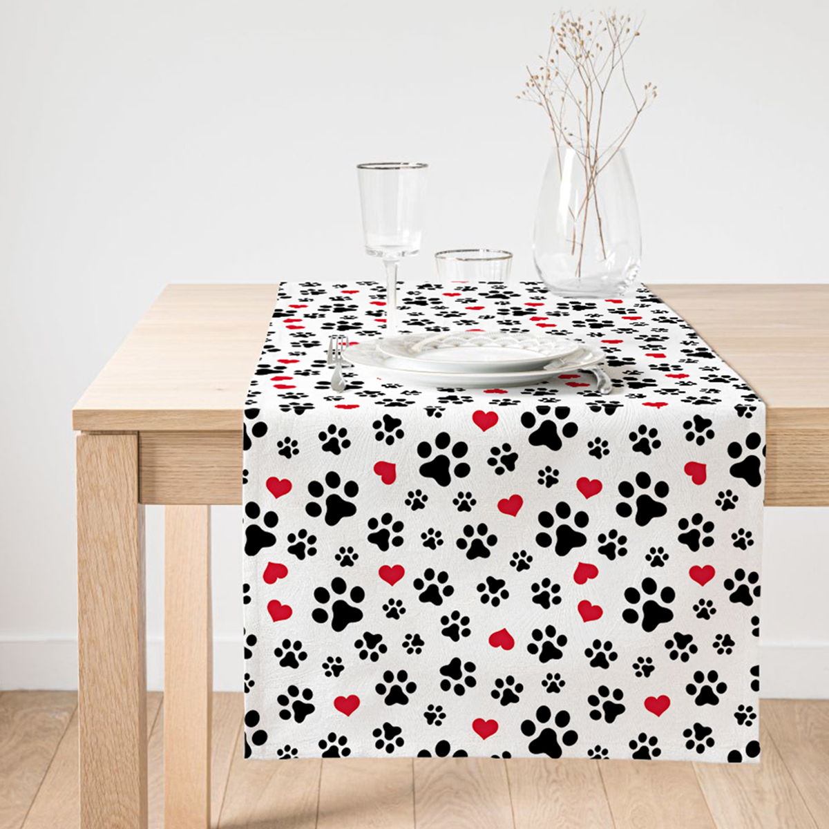Realhomes Köpek Ayak İzi Desenli Özel Tasarım Dekoratif Süet Runner