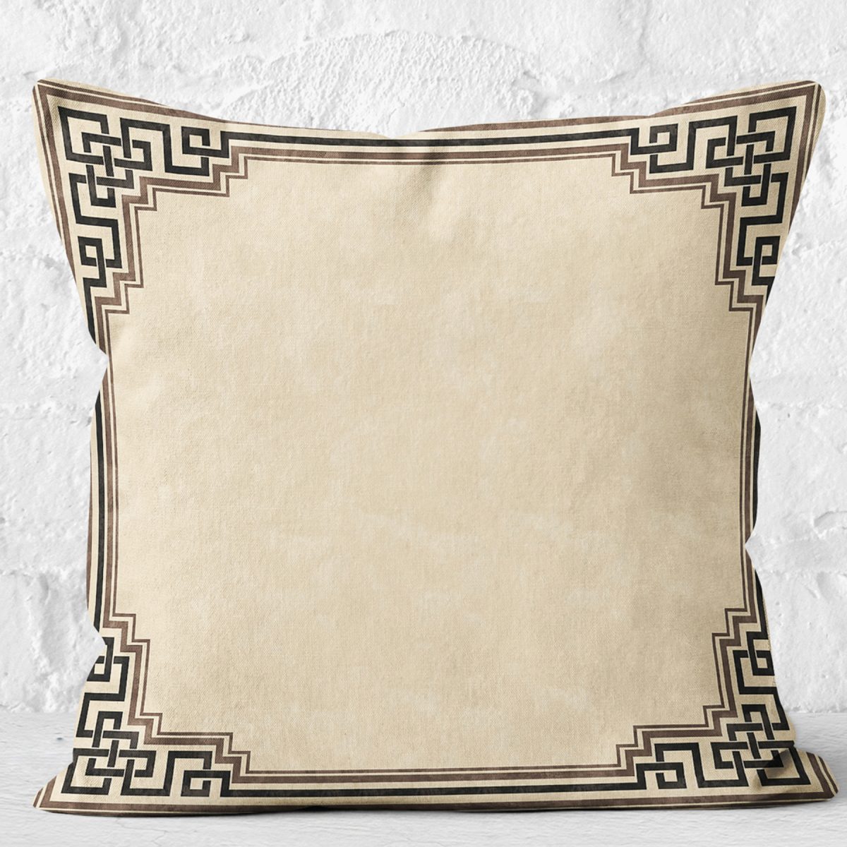 RealHomes Krem - Kahverengi Zeminde Çerçeveli Motifli Klasik Desenli Dijital Baskılı Yastık Kırlent Kılıfı