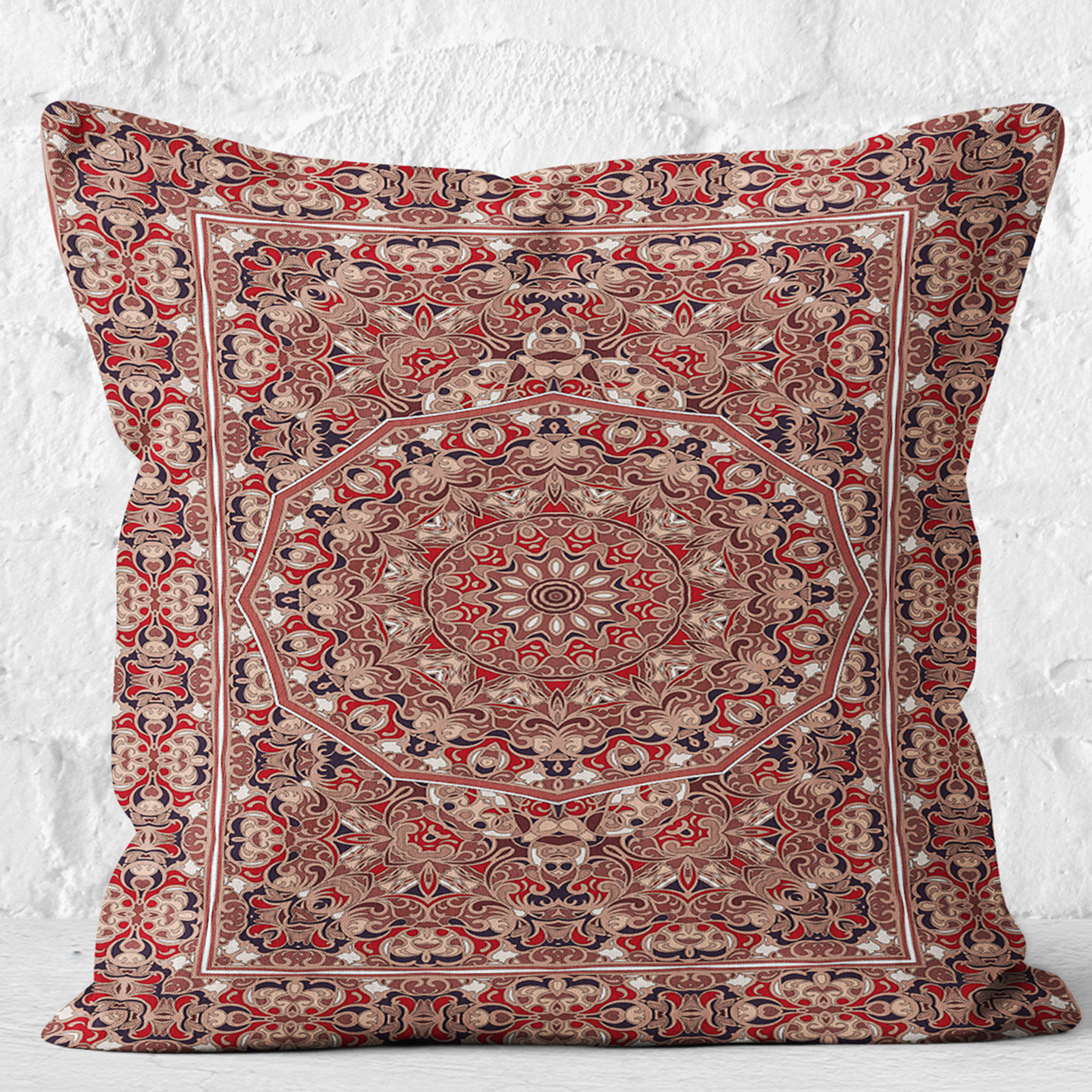RealHomes Krem Zeminde Antika Motifli El Dokuma Desenli Dijital Baskılı Yastık Kırlent Kılıfı Realhomes