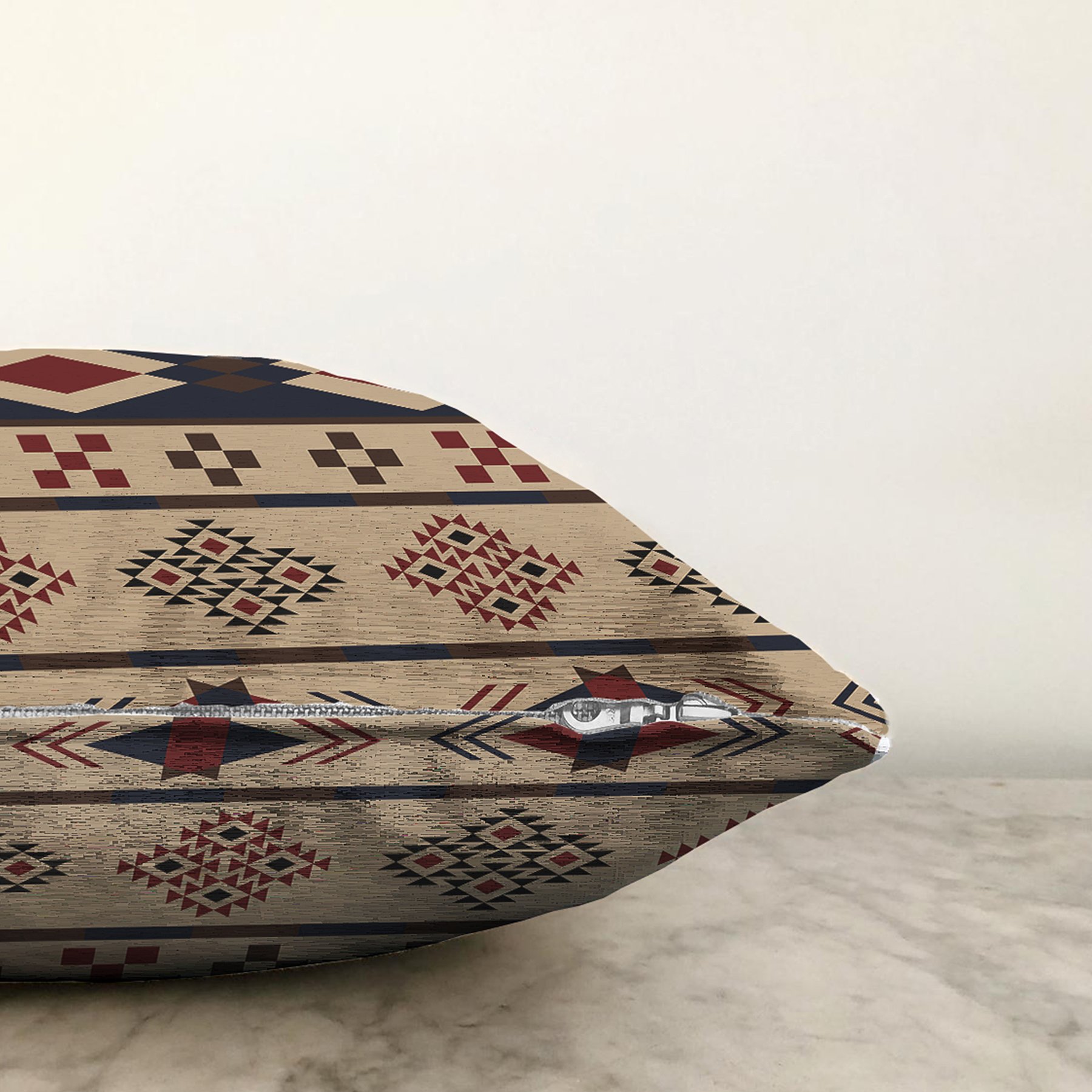 Realhomes Krem Zeminli Geometrik Çizim Tasarımlı Renkli Dijital Baskılı Yastık Kırlent Kılıfı