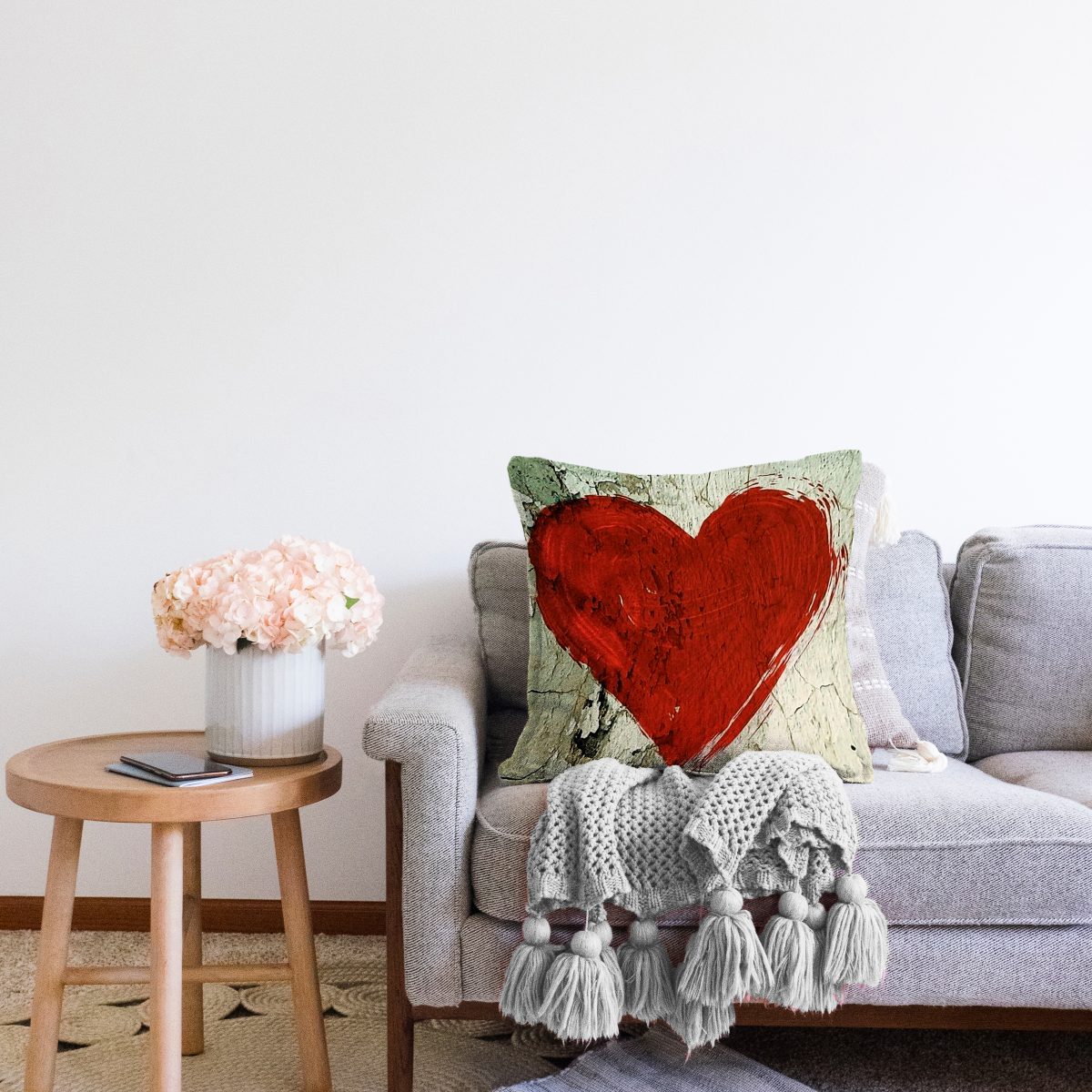 Realhomes Krem Zeminli Mermer Tasarımlı Kalp Temalı Modern Yastık Kırlent Kılıfı
