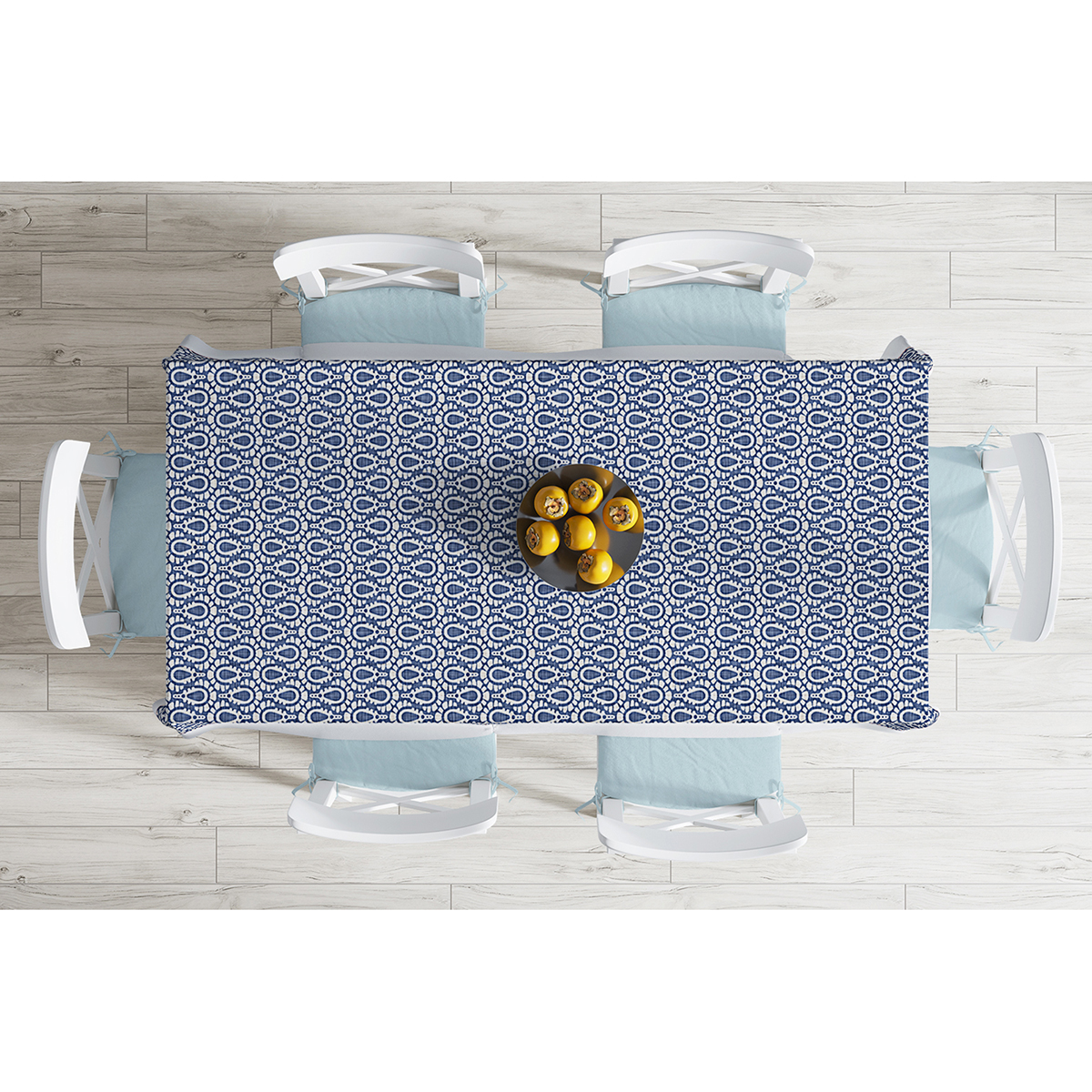 Realhomes Lacivert Kot Zeminde Soyut Çizimler Dijital Baskılı Masa Örtüsü