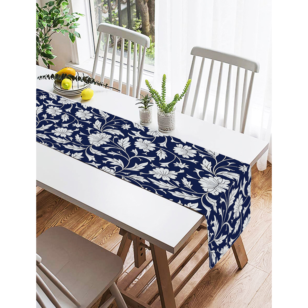 Realhomes Lacivert Zeminli Çiçek Motifli Dijital Baskılı Süet Runner Realhomes